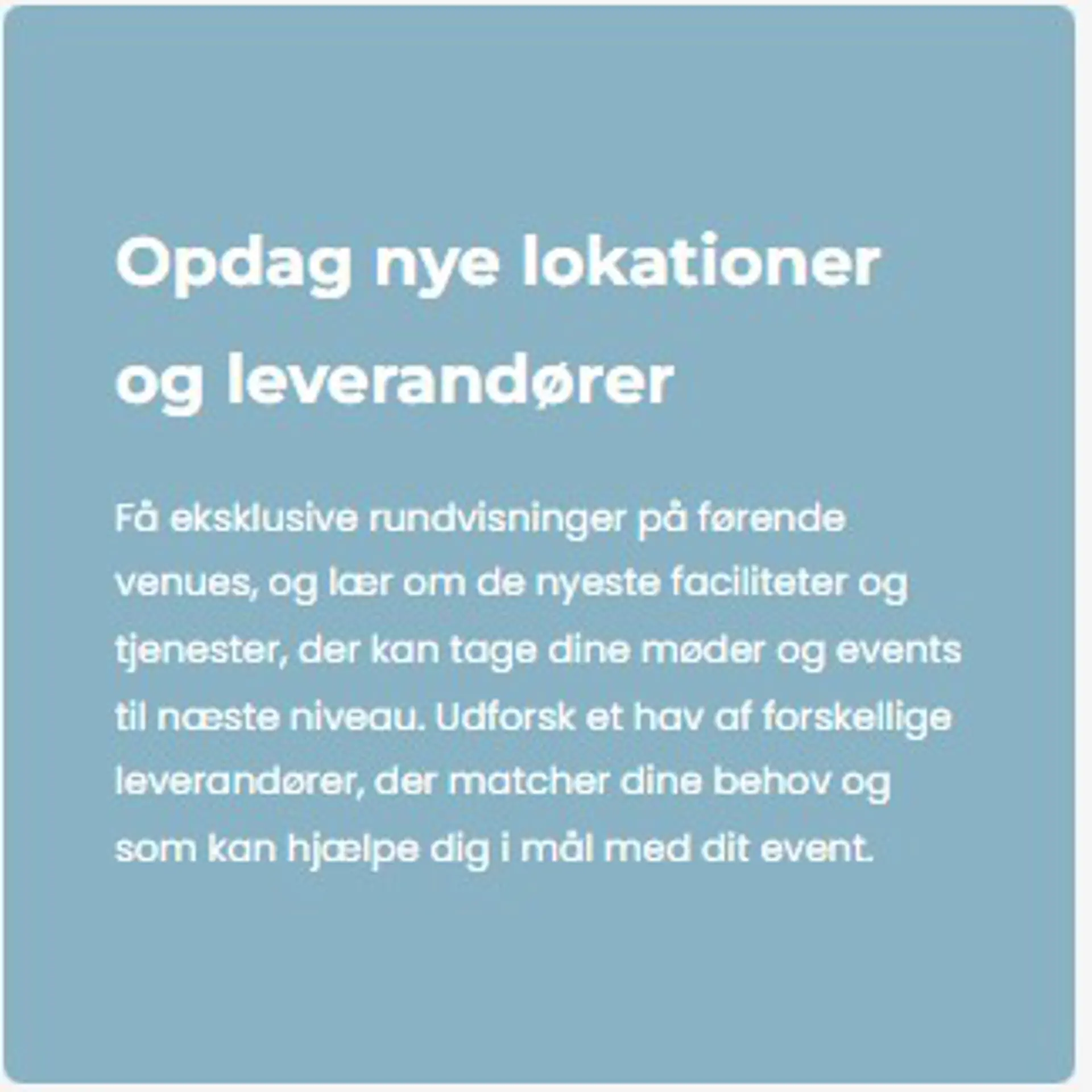 edre arrangementer. Vi samler nøgleaktører fra hele møde- og eventbranchen, inklusive hoteller, konferencesteder, teambuildingbureauer, destinationer, foredragsbureauer, og mange flere. Her får du mulighed for at deltage i korte, fokuserede 15-minutters møder, hvor du kan udforske nye muligheder og finde de helt rette leverandører til dine næste møder og arrangementer.