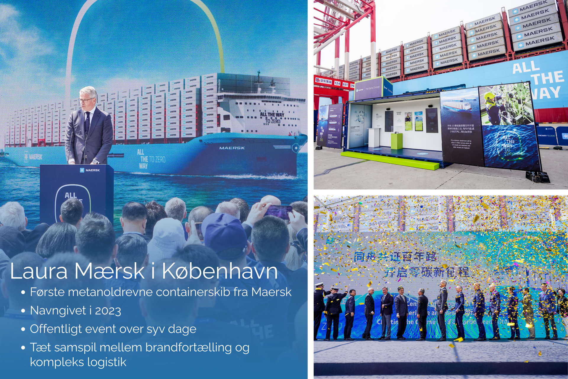 Da Maersk i 2023 søsatte sit første metanoldrevne containerskib, Laura Mærsk, var det et synligt startskud på rederiets grønne omstilling – og begyndelsen på den største samlede opgave, eventbureauet Alive nogensinde har løst.