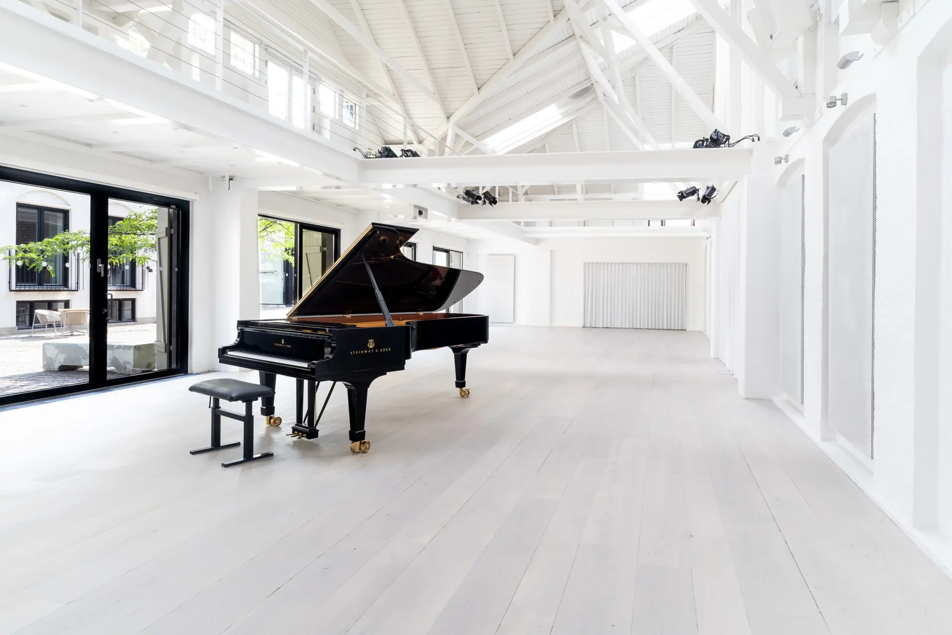 Nu er rummet åbnet op til kip, så her er højt til loftet og et smukt lysindfald, der på en solskinsdag skaber søjler af lyskunst, der falder ned igennem salen.