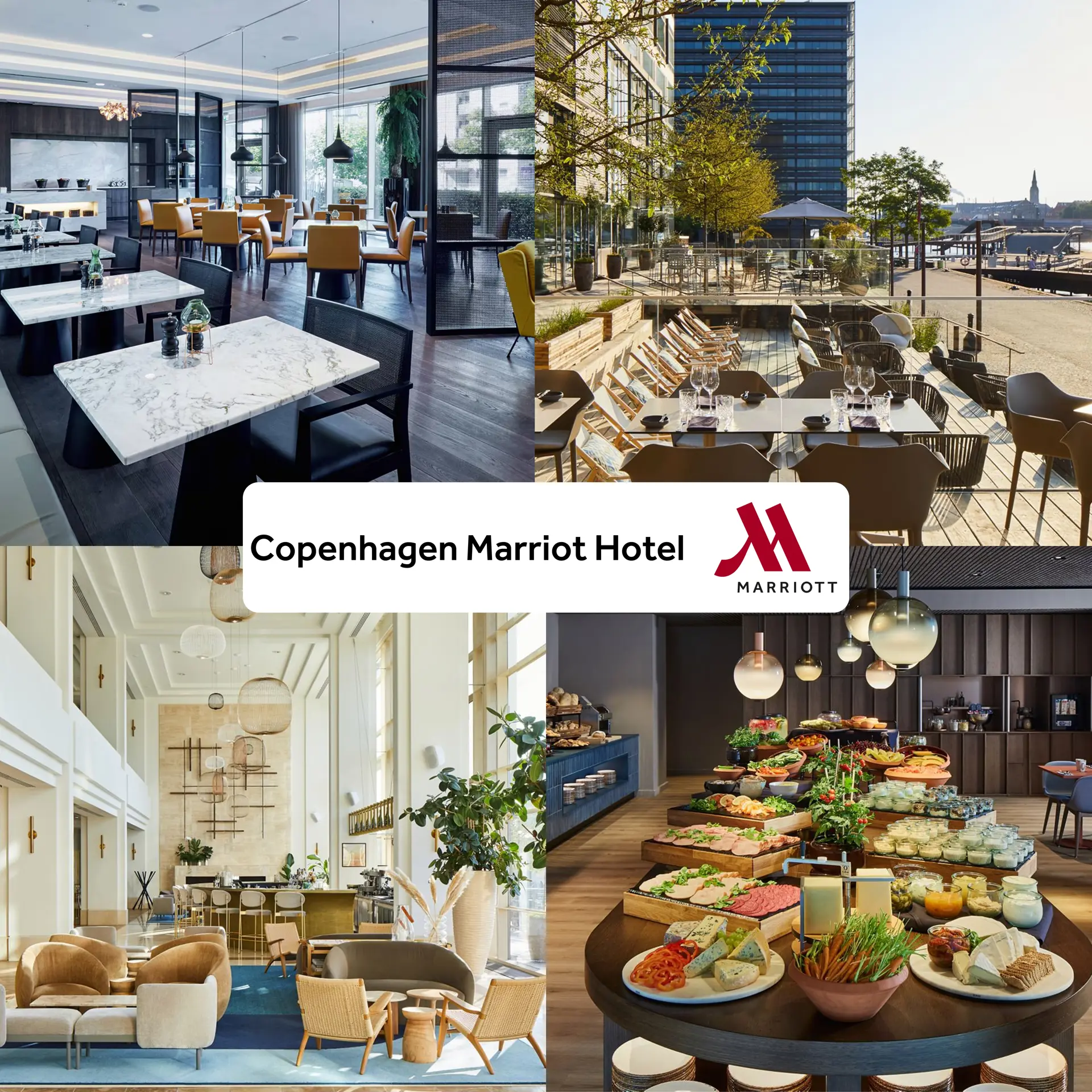 Velkommen til Copenhagen Marriott Hotel – et eksklusivt og nyrenoveret hotel med en fantastisk beliggenhed direkte ud til havnekanalen. Hotellet byder på moderne faciliteter, fleksible mødelokaler i alle størrelser og en elegant atmosfære, der gør det til den perfekte ramme til alt fra mindre møder til store konferencer. Med central placering tæt på Københavns pulserende liv er mulighederne mange, og rammerne skaber inspiration til ethvert arrangement.
