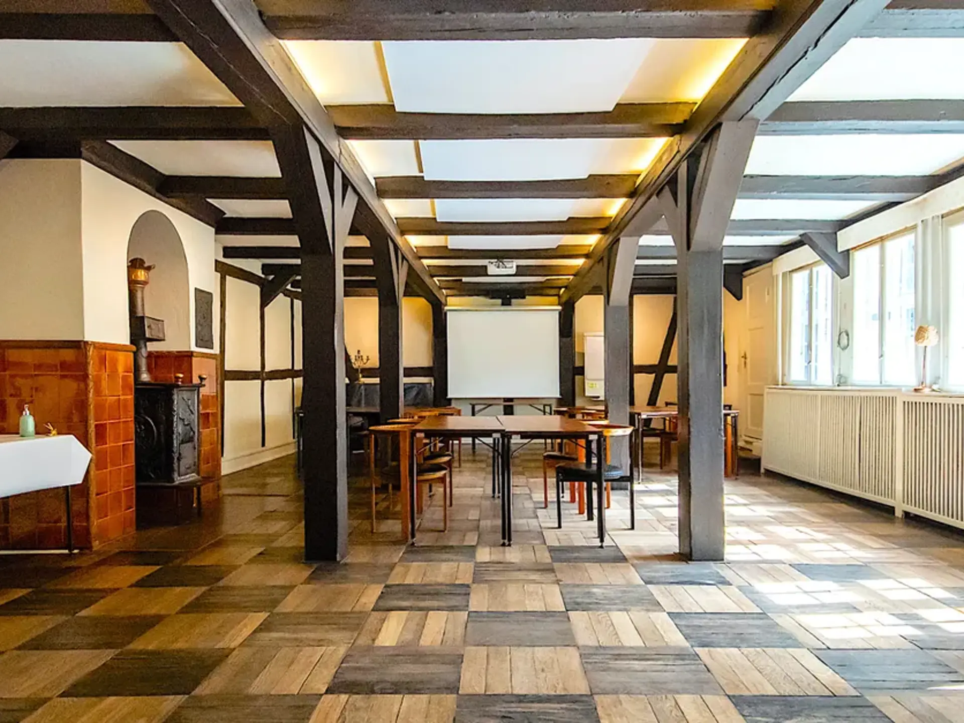 Vi kan lave mange forskellige bordopstilinger i forhold til Holbergsalens opbygning.