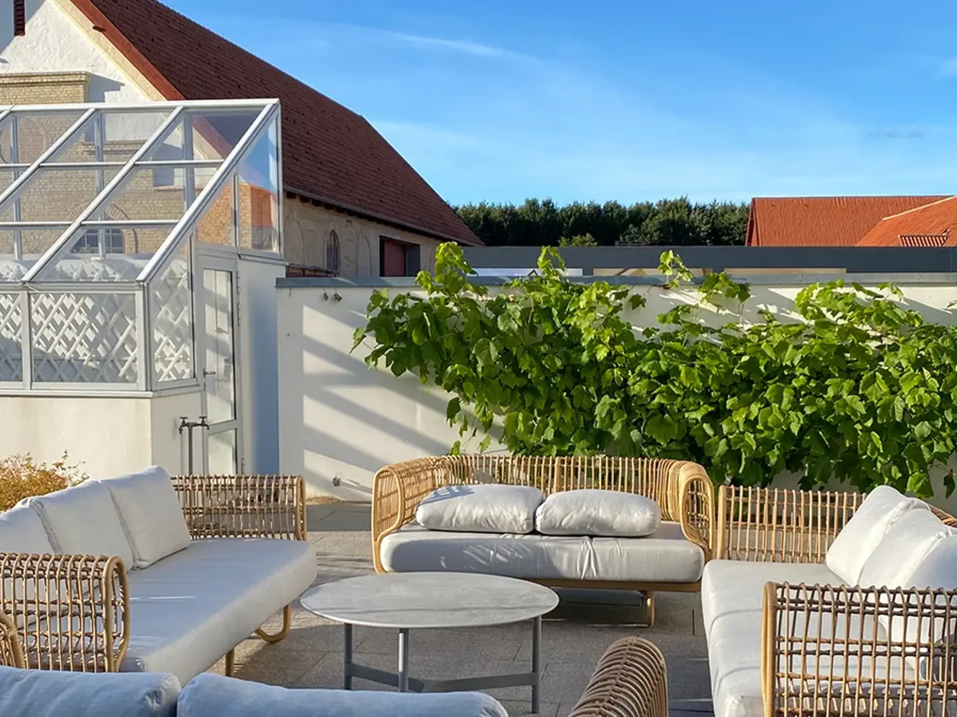 Endvidere har vi vores hyggelige Rytterstue, som er en jagtstue med udgang til terrasse og skøn natur. Rytterstuen kan rumme op til 40 personer. Der er både mulighed for at indrette lokalet med mindre mødeborde eller med lange borde. Når der skal holdes lidt pauser, er der direkte udgang til den skønne terrasse, der har udsigt til natur.