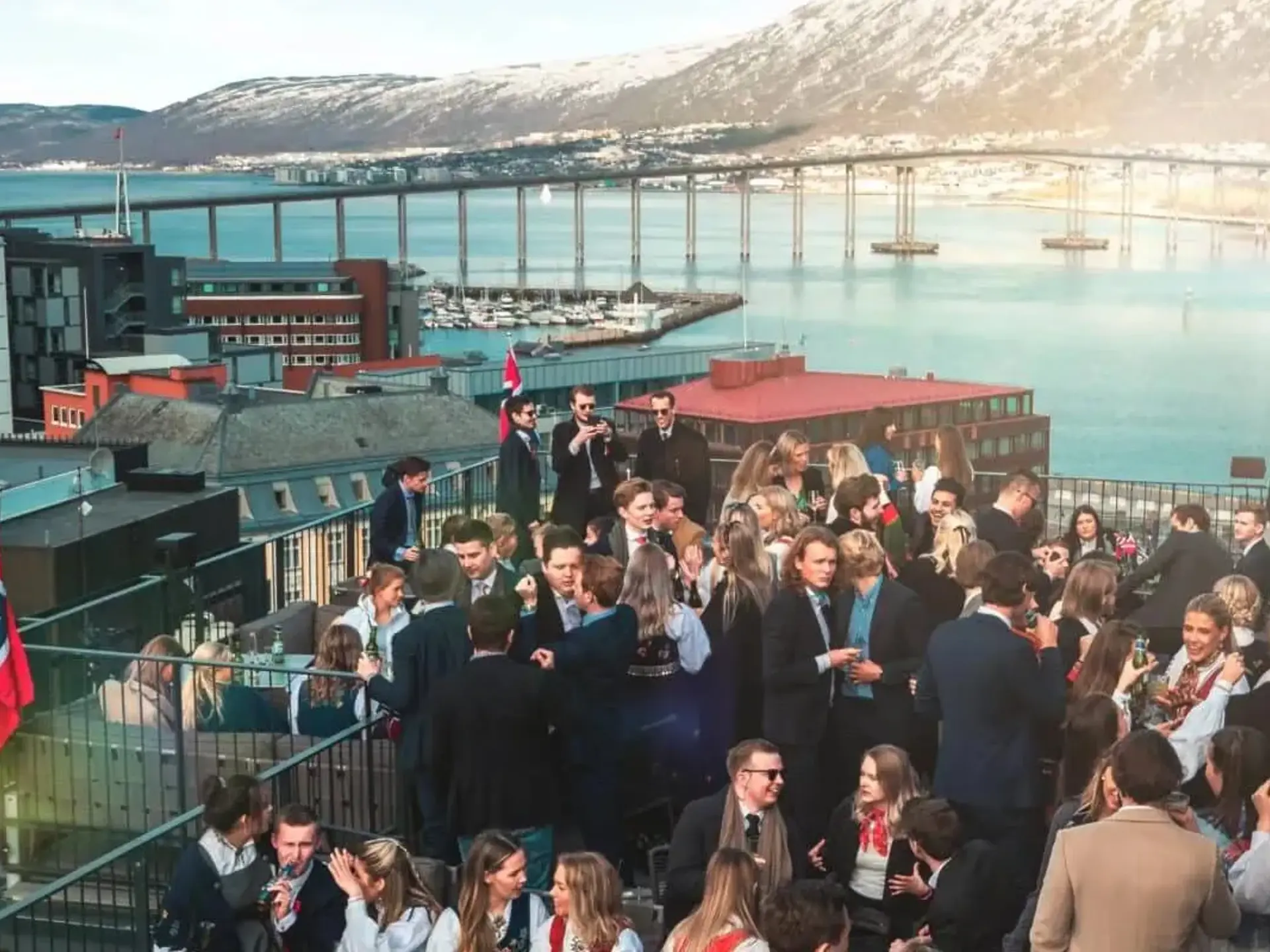 Oplev Tromsø fra toppen i vores eksklusive skybar på 11. etage. Denne enestående bar tilbyder en uforglemmelig udsigt over byen og dens omgivelser, hvilket gør det til det ideelle sted for afslappede møder, private arrangementer eller bare for at nyde en drink under midnatssolen eller nordlyset.