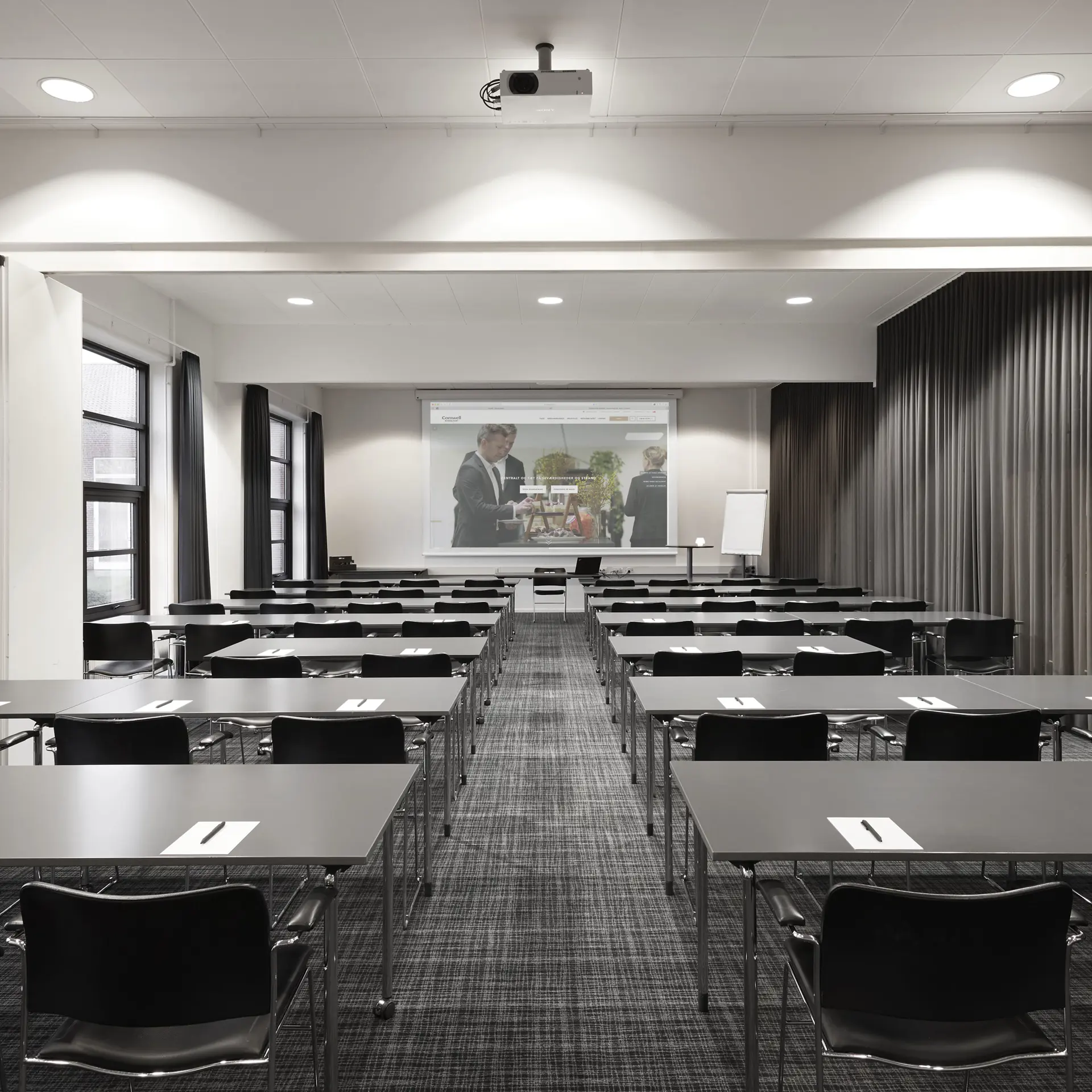 Vi tilbyder 13 fleksible møde- og konferencelokaler, 9 lyse grupperum, en konferencesal med plads til 370 gæster samt en stor hall velegnet til udstillinger.