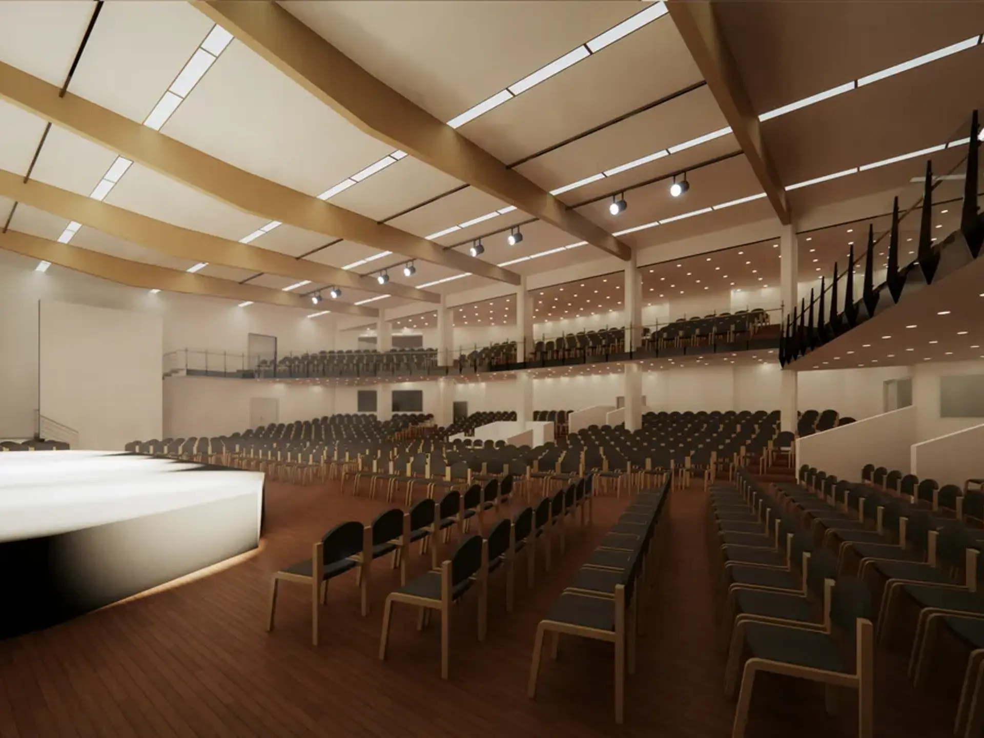 Vores imponerende konferencesal er godkendt til op til 1.400 personer og har komfortable siddepladser til 1.000 gæster, fordelt på 620 pladser på gulvet og 380 pladser på balkonen. Denne opdeling skaber en intim atmosfære, hvor alle føler sig tæt på scenen, uanset hvor de sidder. Salen kan også omkonfigureres til mindre arrangementer med 300 deltagere, hvilket gør den utrolig fleksibel.
