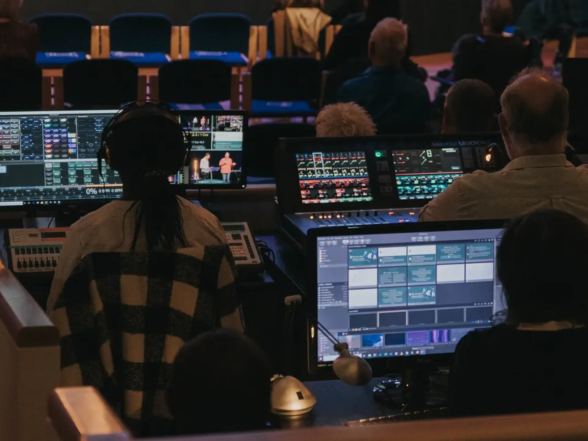 - AV-udstyr: 3 projektorer, diverse LCD fladskærme, 4-kameras produktion til livestreaming