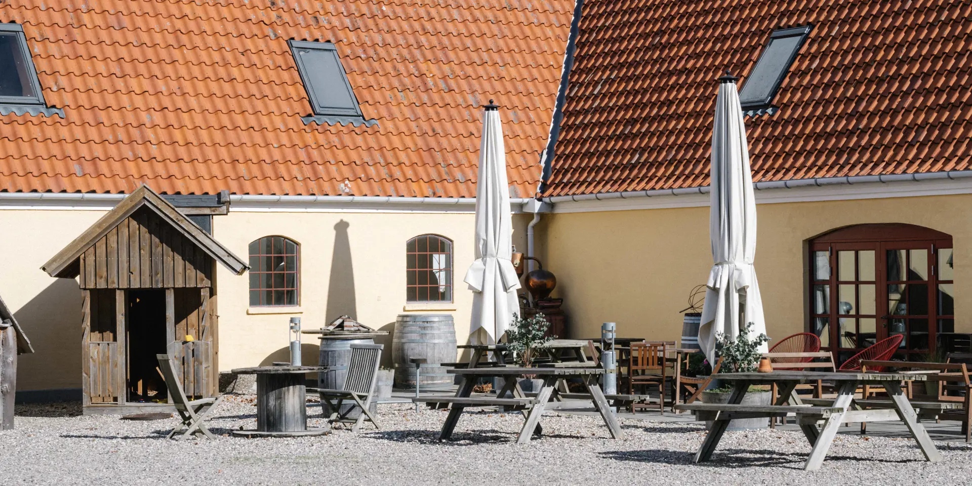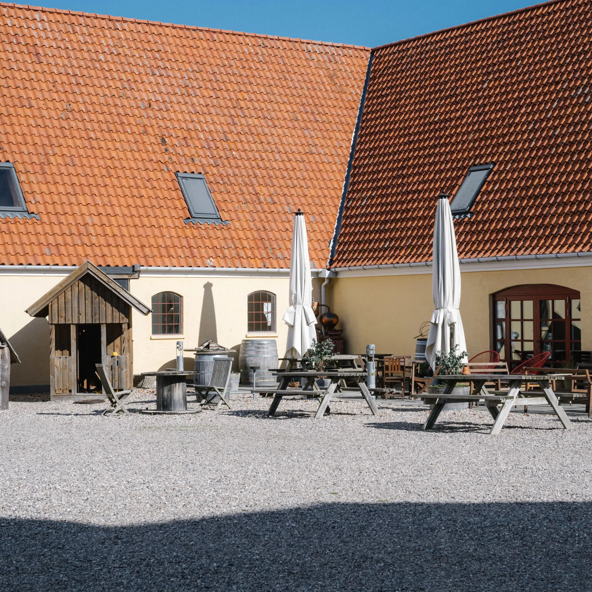 - Stuehus: Vores charmerende stuehus har tre små stuer, hver med plads til op til 36 personer. Dette er det perfekte sted for mindre møder, gruppearbejde eller uformelle arrangementer.