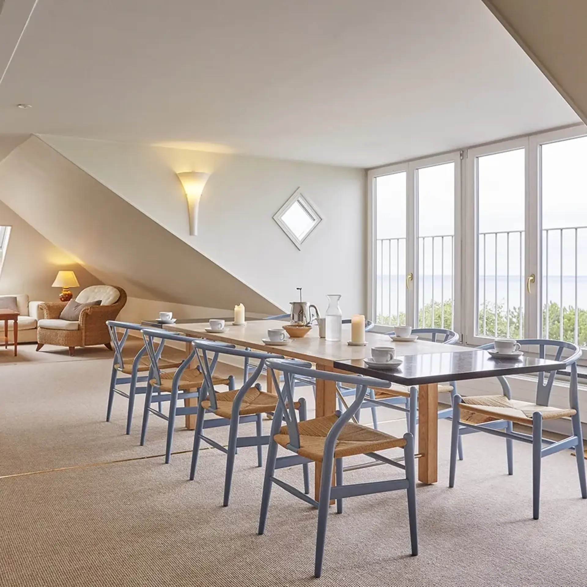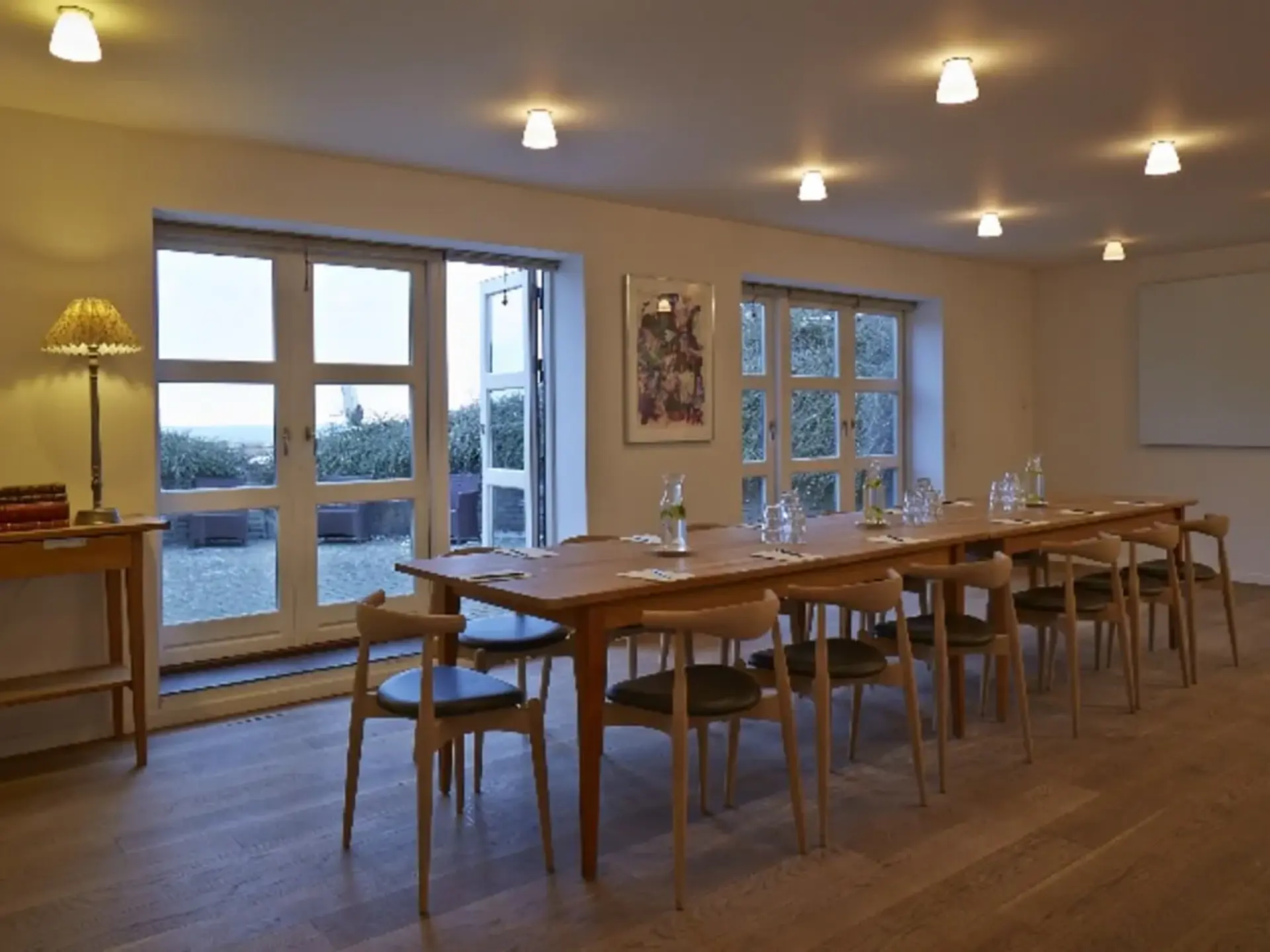 - Større kursuslokaler: Ét lokale med kapacitet op til 24 personer og et andet med plads til ca. 27 personer, begge med egen indgang og panoramaudsigt over havet.