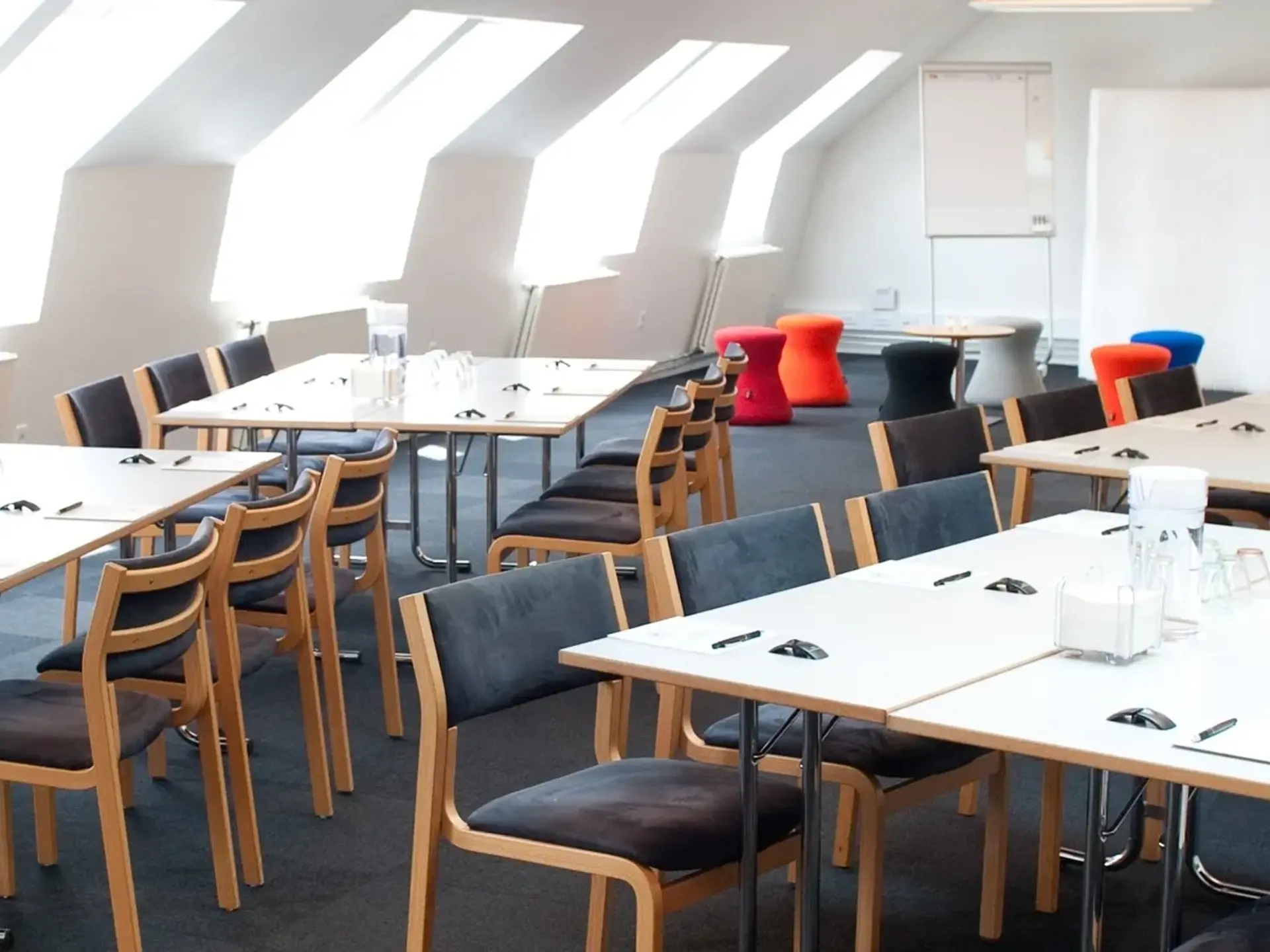 Alle plenumlokaler indeholder alt i AV-udstyr, inkl. loftmonteret projektor eller storskærme, instruktør-pc samt trådløst wifi og masser af procesunderstøttende rekvisitter.