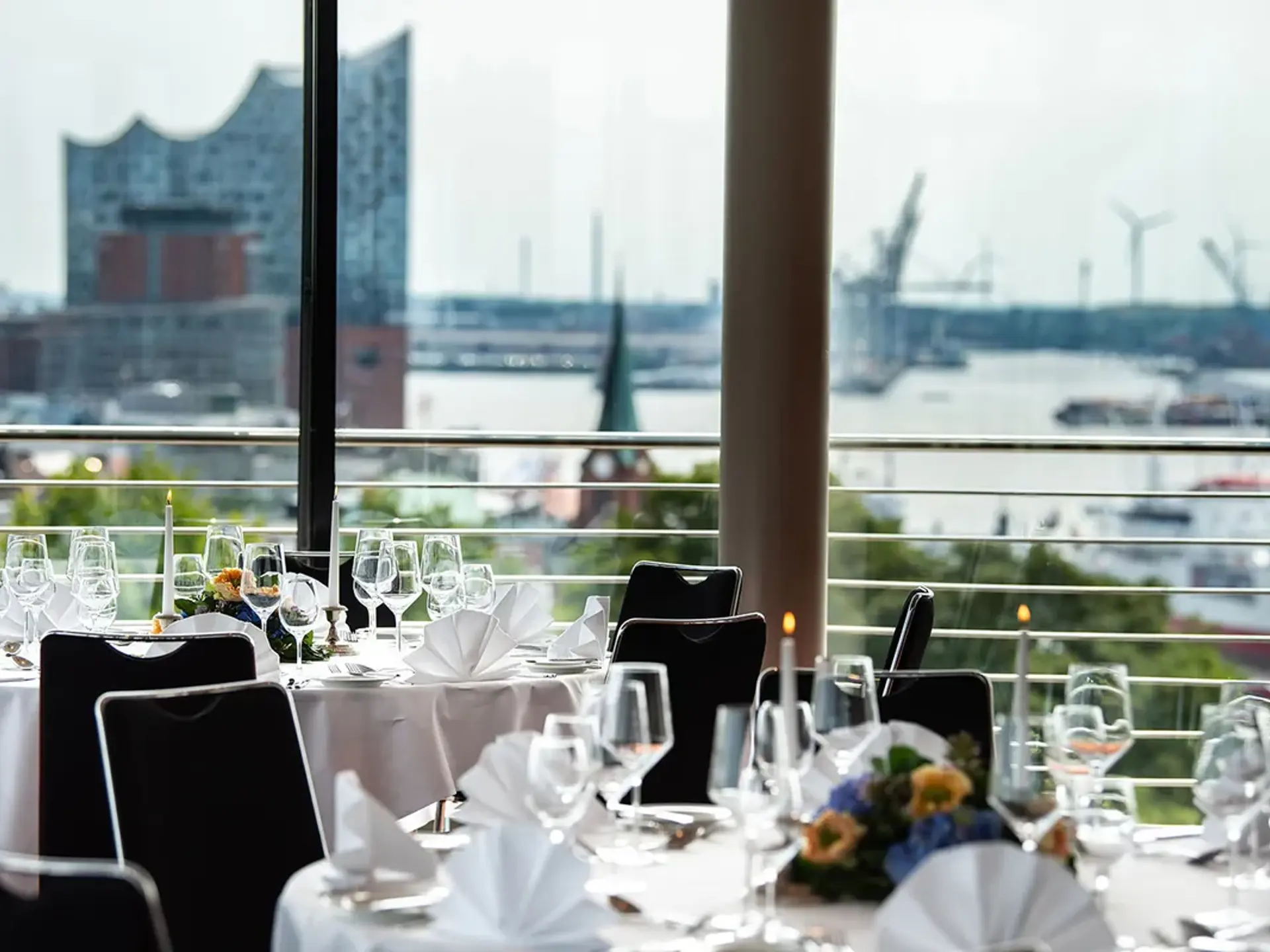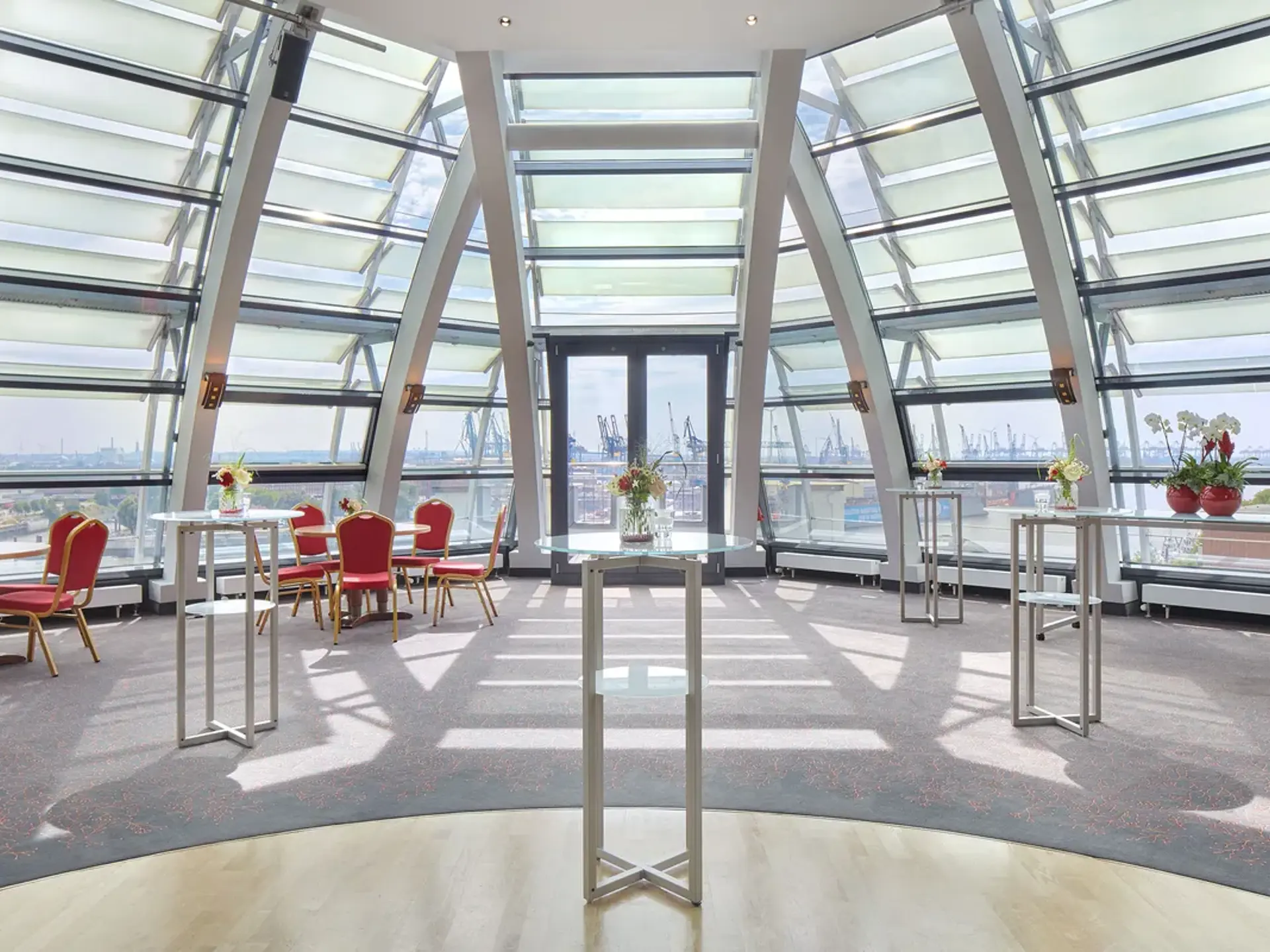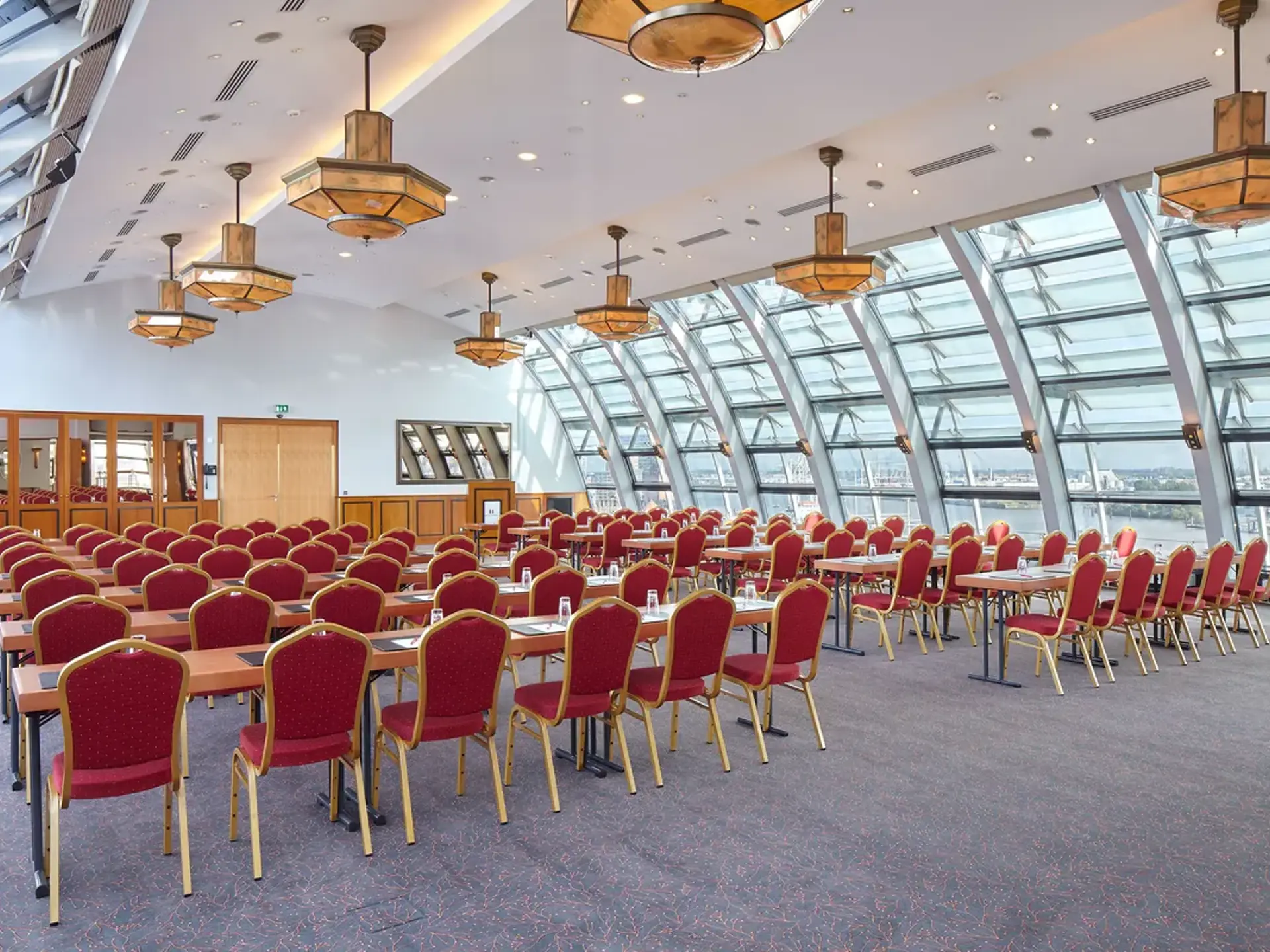 Det største mødelokale "Elbkuppel" med 290 m2 har en maksimal kapacitet til 350 personer.