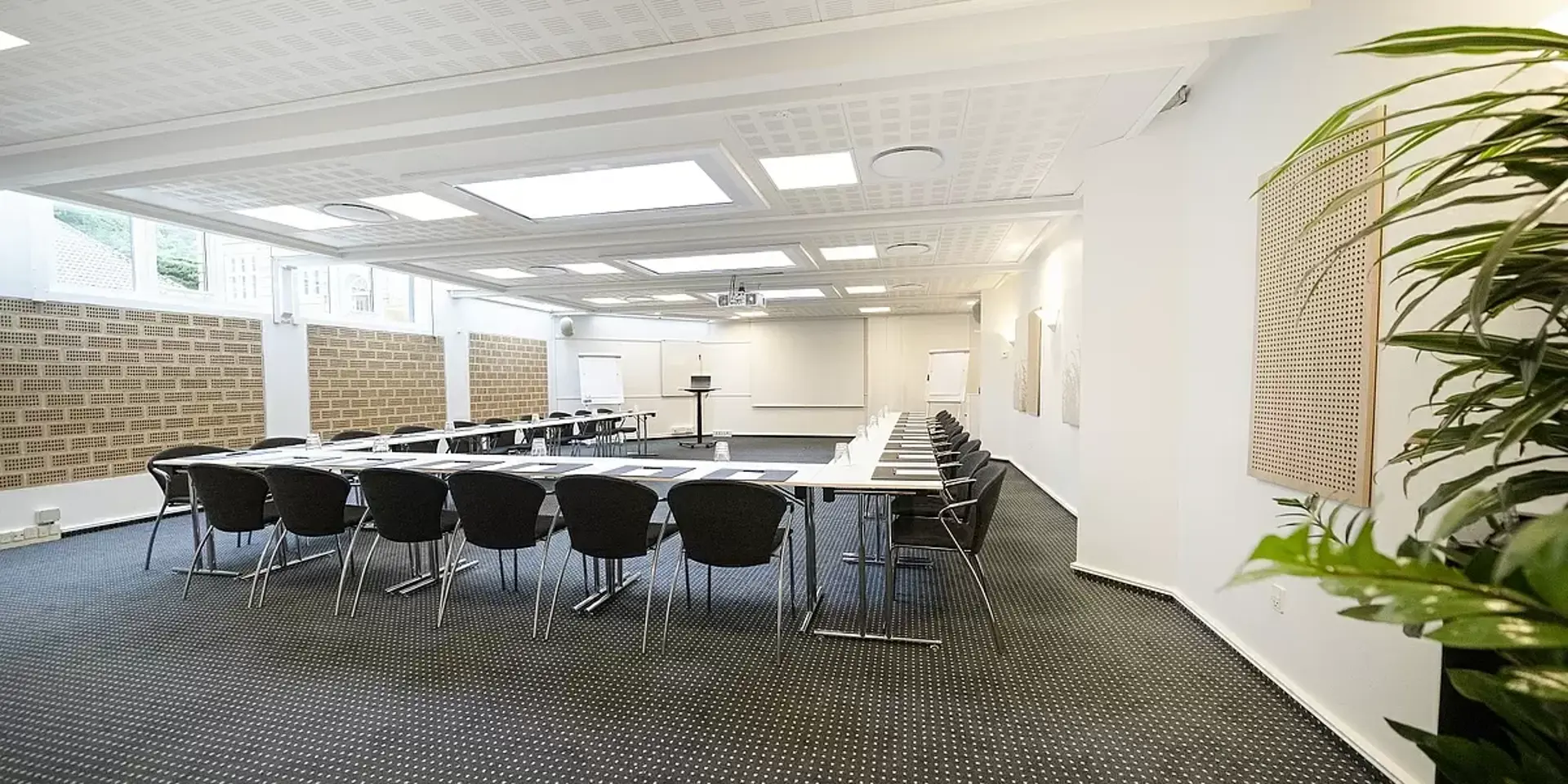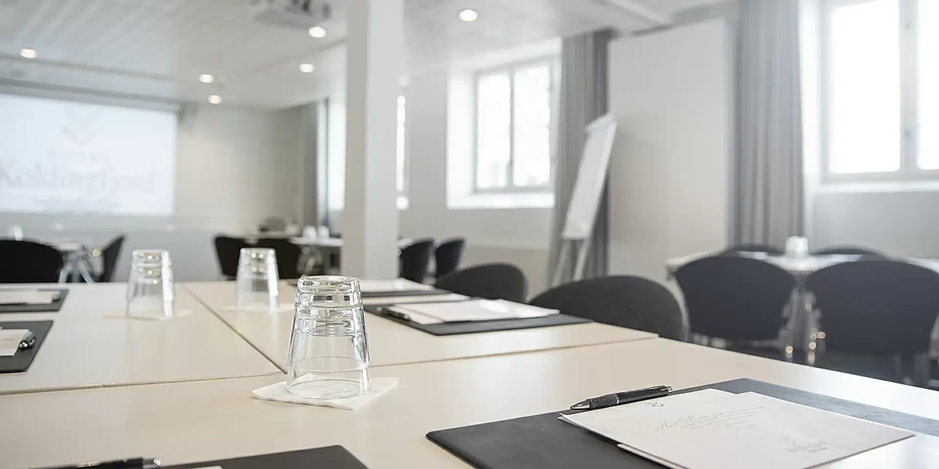 Vores mødelokaler er lyse og indbydende, udstyret med moderne AV-teknologi og designet til at opfylde fremtidens krav. Vi har lokaler til enhver form for møde - fra store sale til små, intime mødelokaler med udsigt over fjorden.