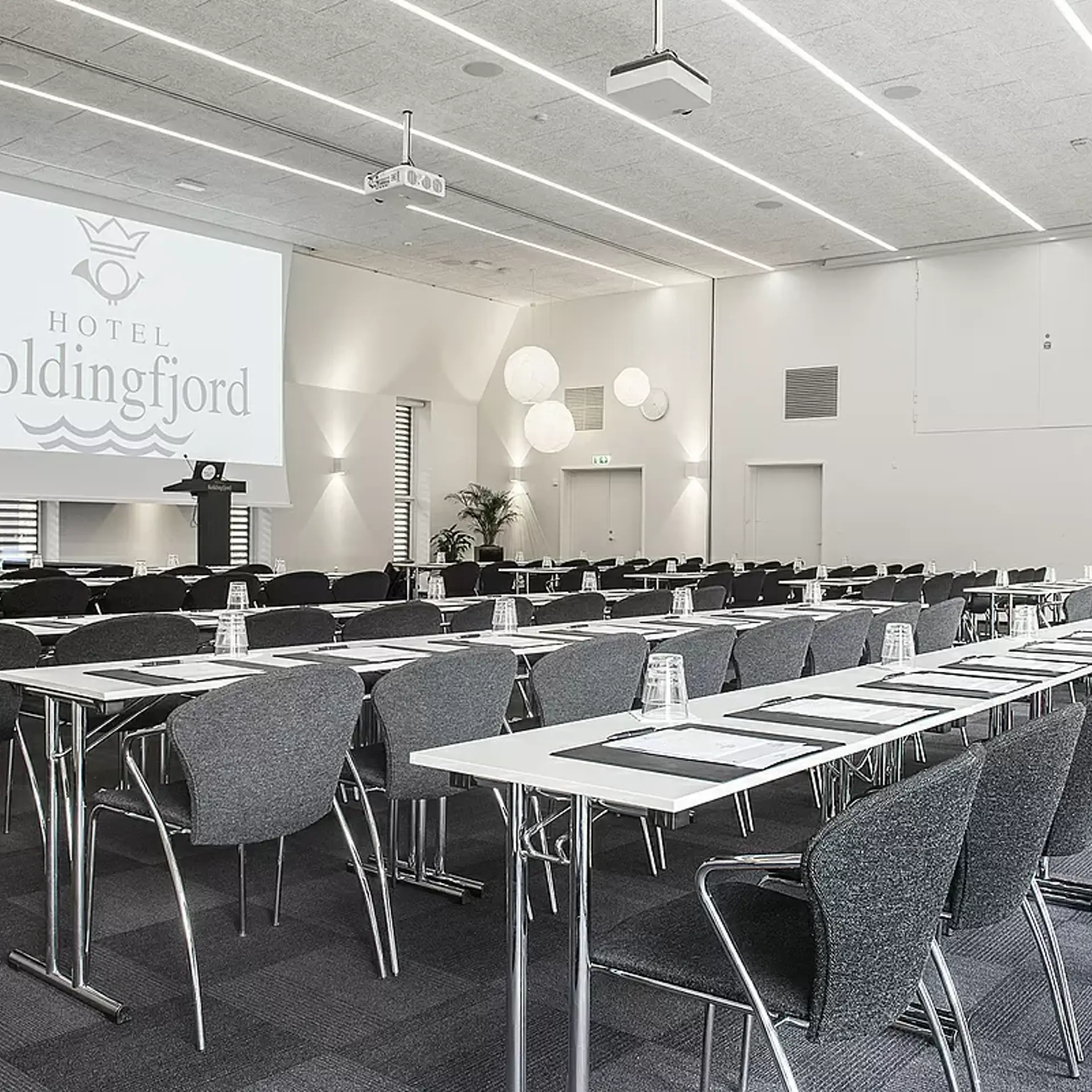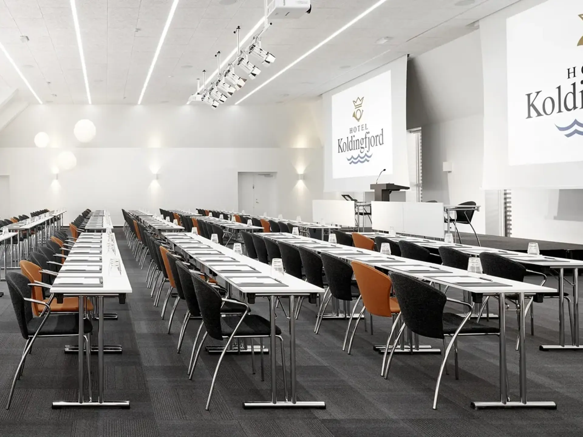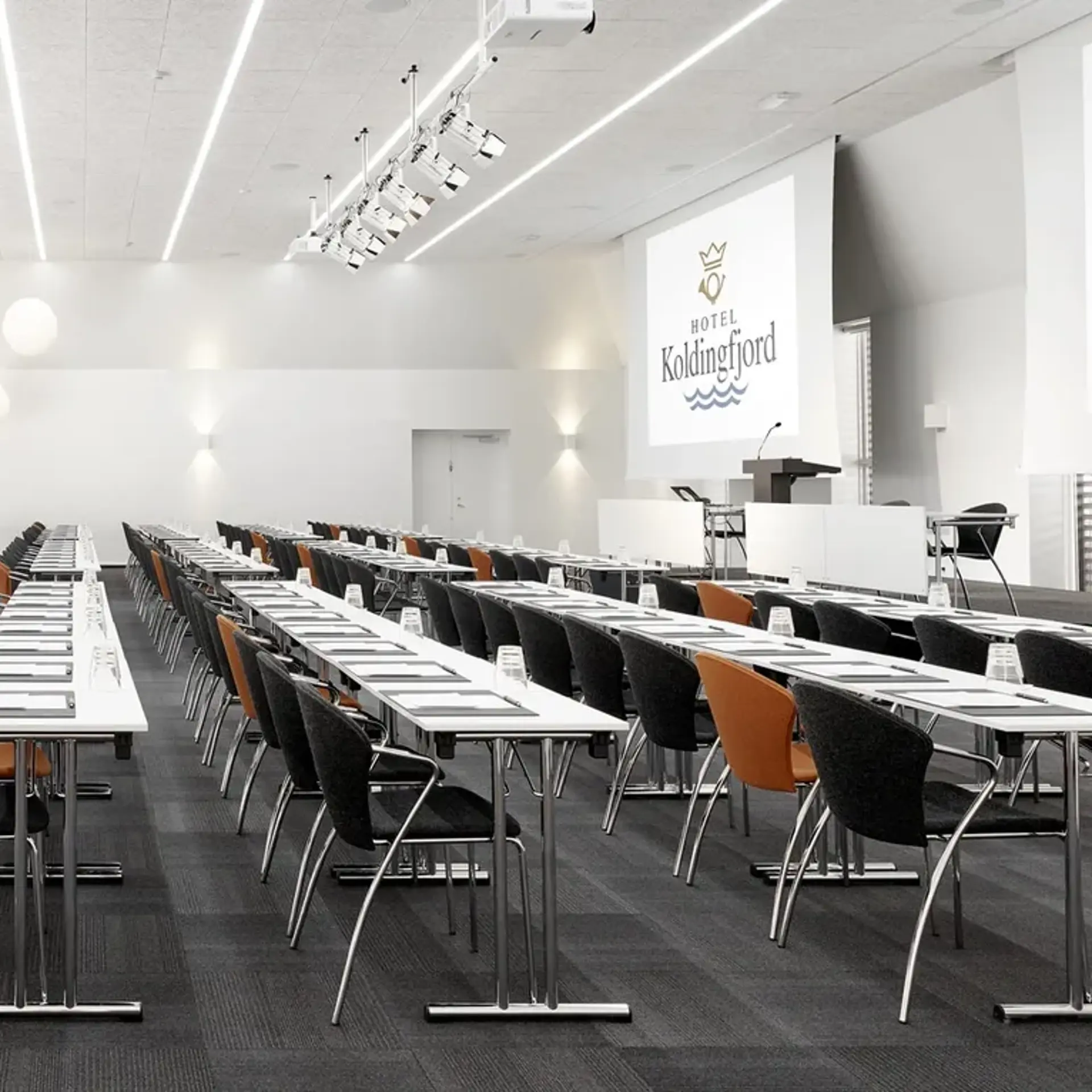 Hotel Koldingfjord har 12 mødelokaler, der kan rumme alt fra små møder til store konferencer med op til 300 deltagere. Vi tilbyder også grupperum og mulighed for hybridmøder med live streaming, så deltagerantallet kan øges betydeligt.
