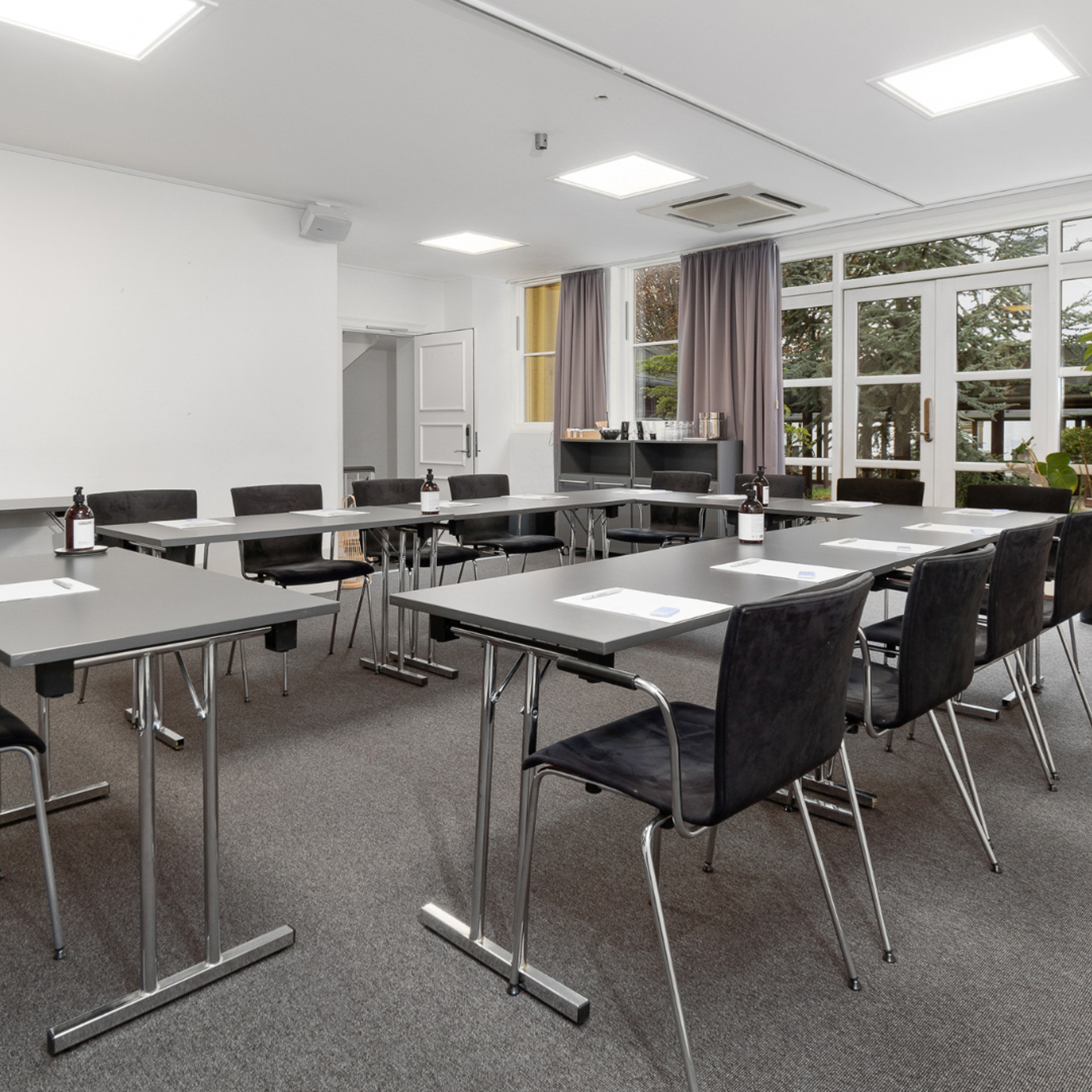 8 grupperum: Perfekt til mindre breakout-sessions, workshops eller små møder. Hvert grupperum har kapacitet til 8-12 personer.