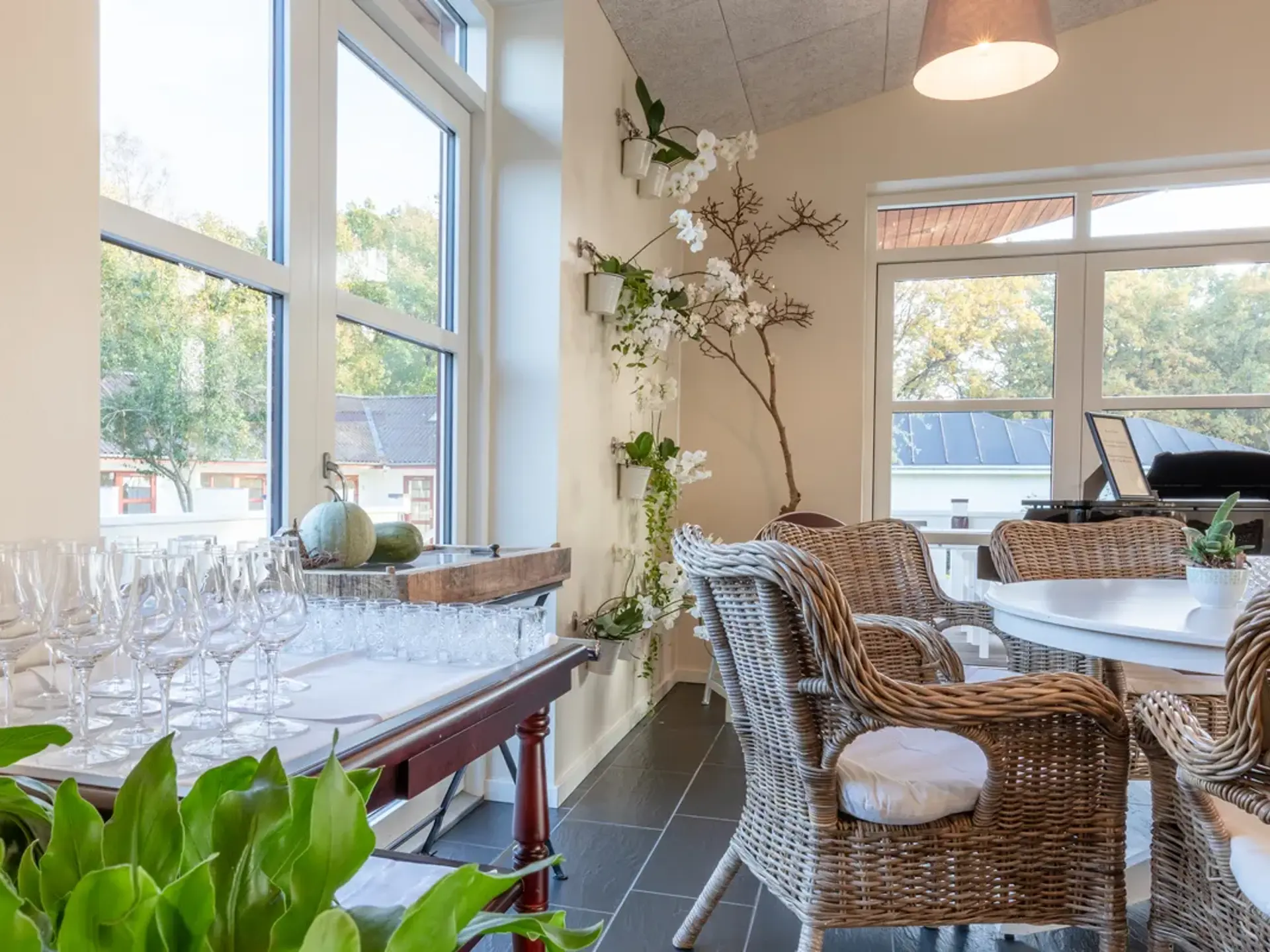 Knudsal er et større lokale med direkte adgang til haven og terrassen, ideelt til mellemstore grupper med kapacitet op til 45 personer.