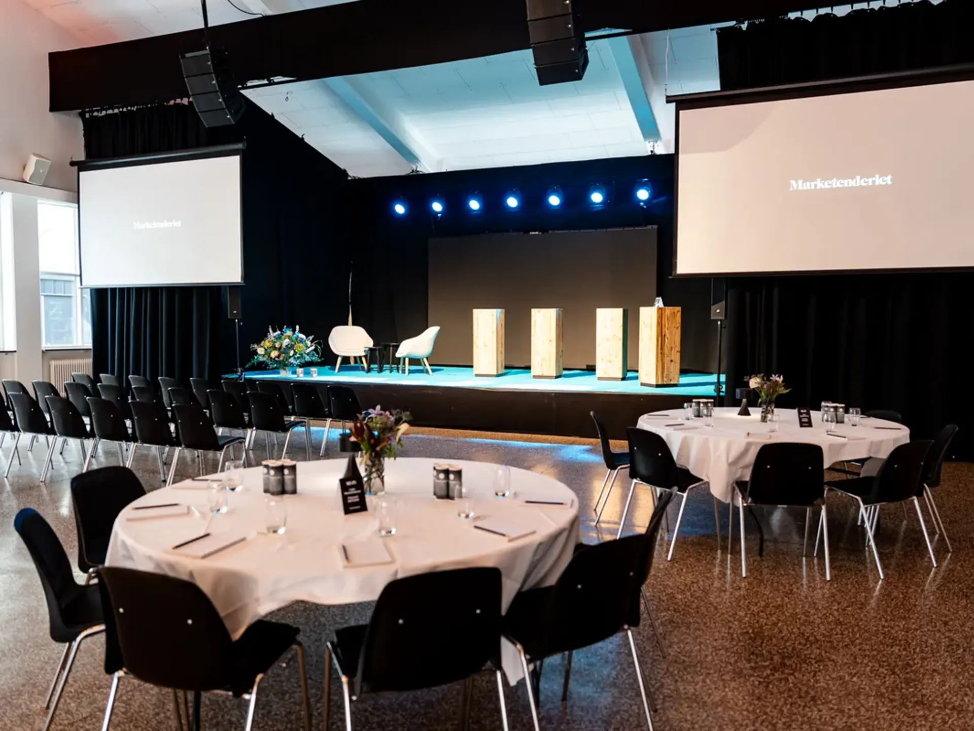 Marketenderiets åbne, lyse og harmoniske areal er et ideelt konferencelokale til både små og store konferencer og møder.