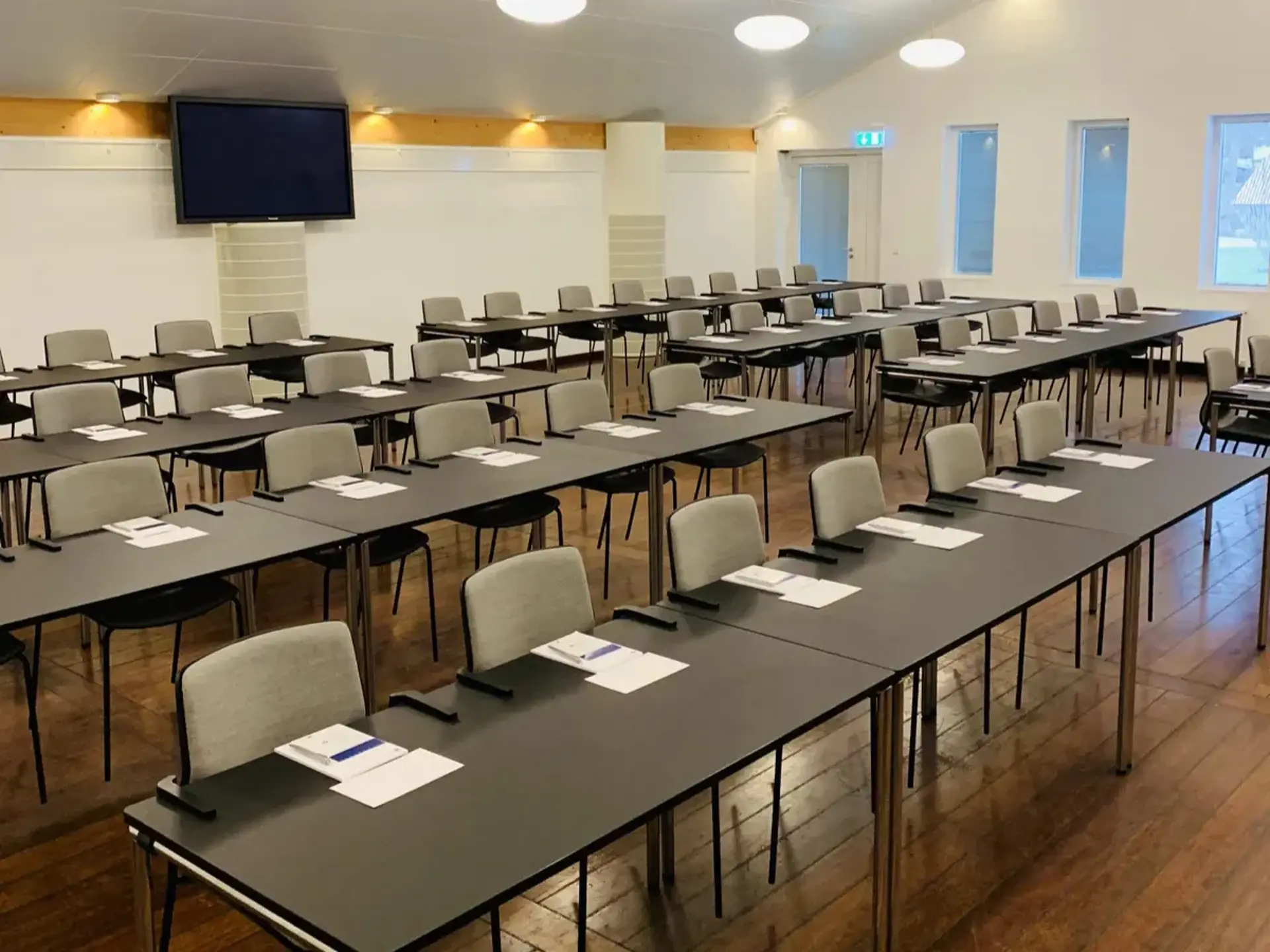 Når I vælger Munkerupgaard som jeres mødested, får I adgang til en række topmoderne faciliteter, der kan tilpasses præcis efter jeres behov. Vores plenumlokale kan rumme op til 96 deltagere, og de fleksible opstillingsmuligheder gør det let at skabe den ideelle opsætning for netop jeres event. Derudover har vi fire mindre grupperum, som er perfekte til workshops, teambuilding eller mere intime møder.