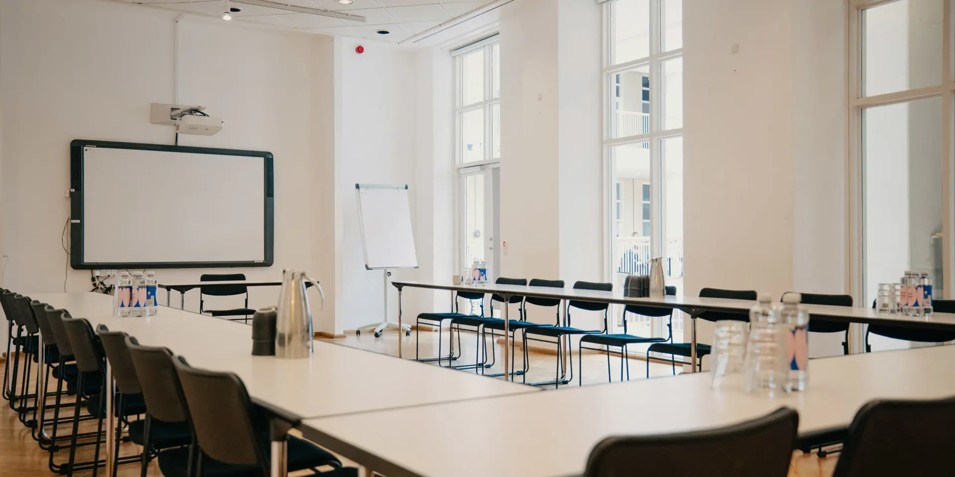 Vores mødelokaler har moderne AV-udstyr og fleksible opstillinger, der kan tilpasses forskellige behov. Lokalerne kan rumme op til 40 personer og er perfekte til møder og workshops.