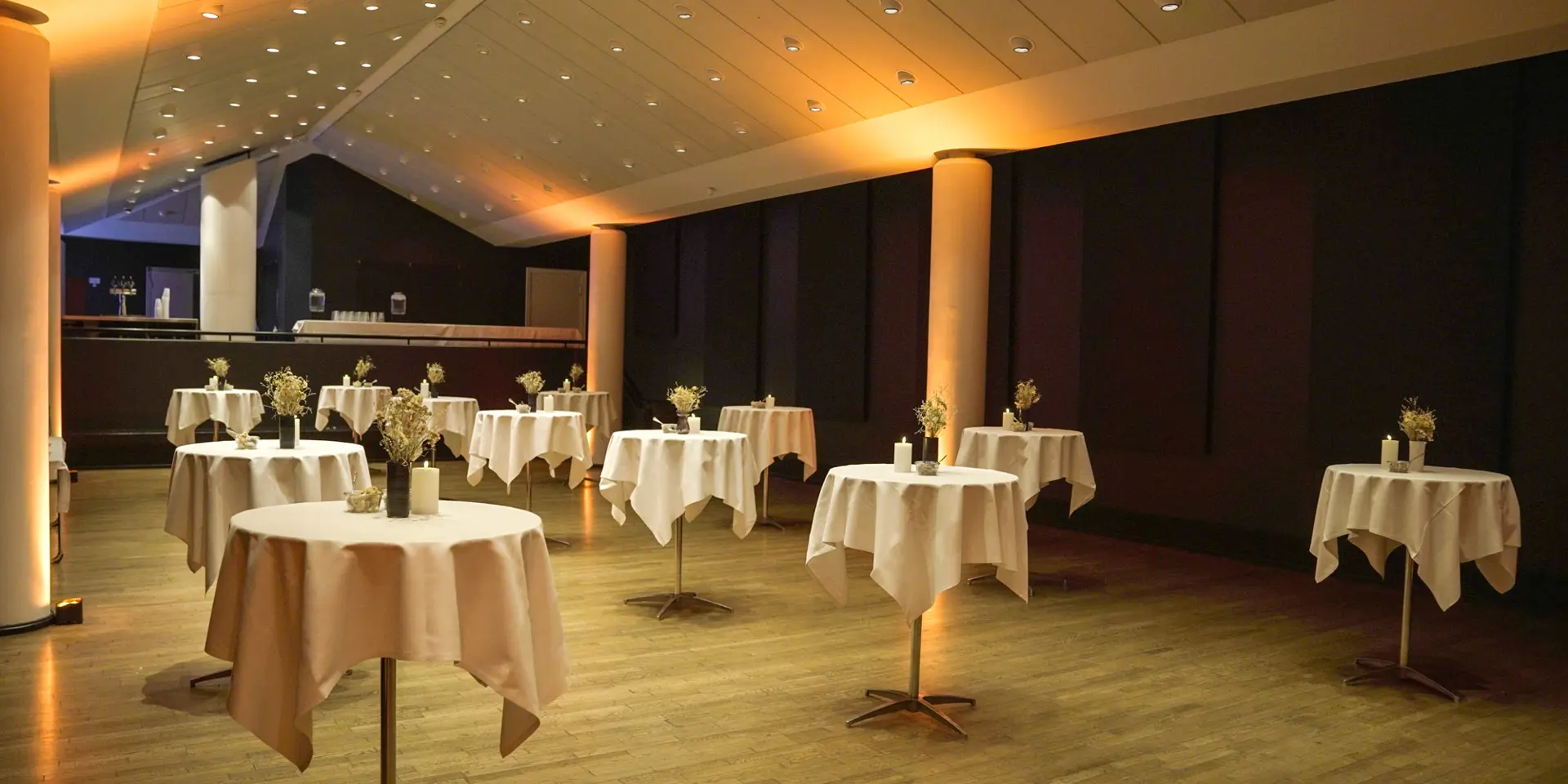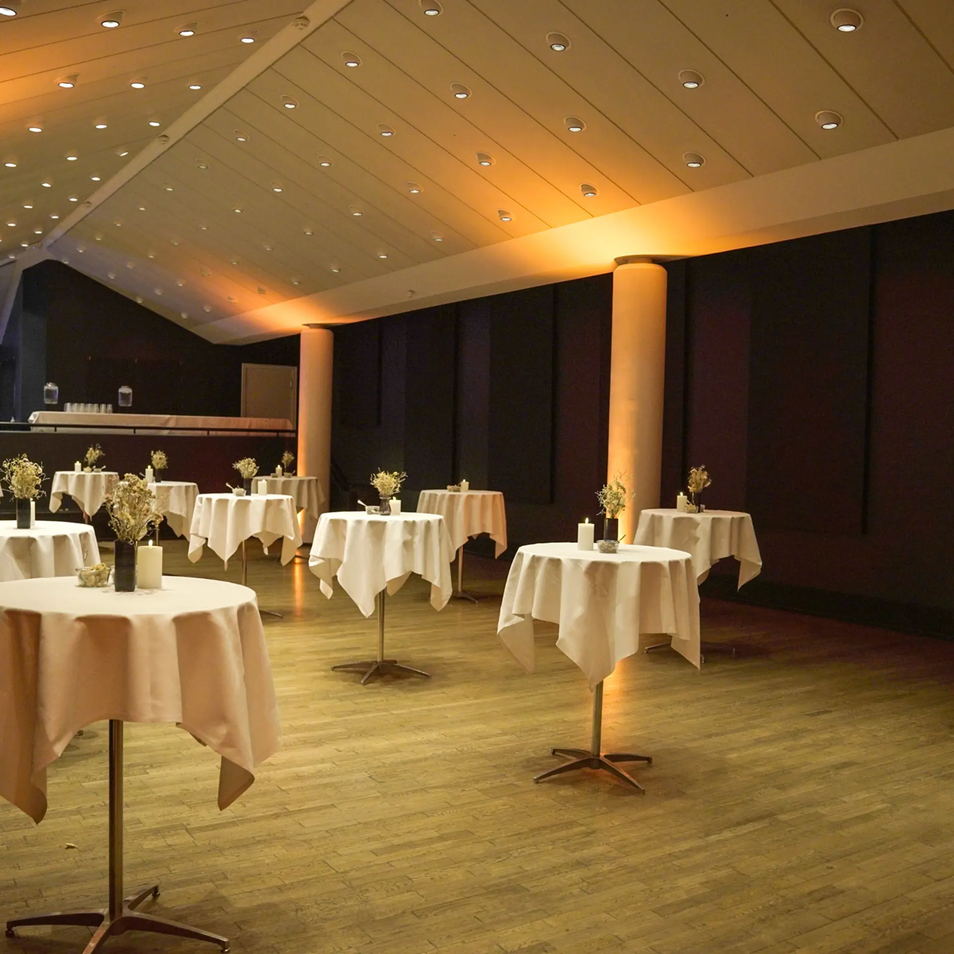 Festsalen imponerer med sine smukke søjler og spektakulære udtryk, hvilket tilføjer en ekstra dimension af elegance til dit arrangement. Denne sal er perfekt til konferencer, middage eller receptioner og har plads til op til 220 personer, hvilket sikrer en uforglemmelig oplevelse for alle deltagere.