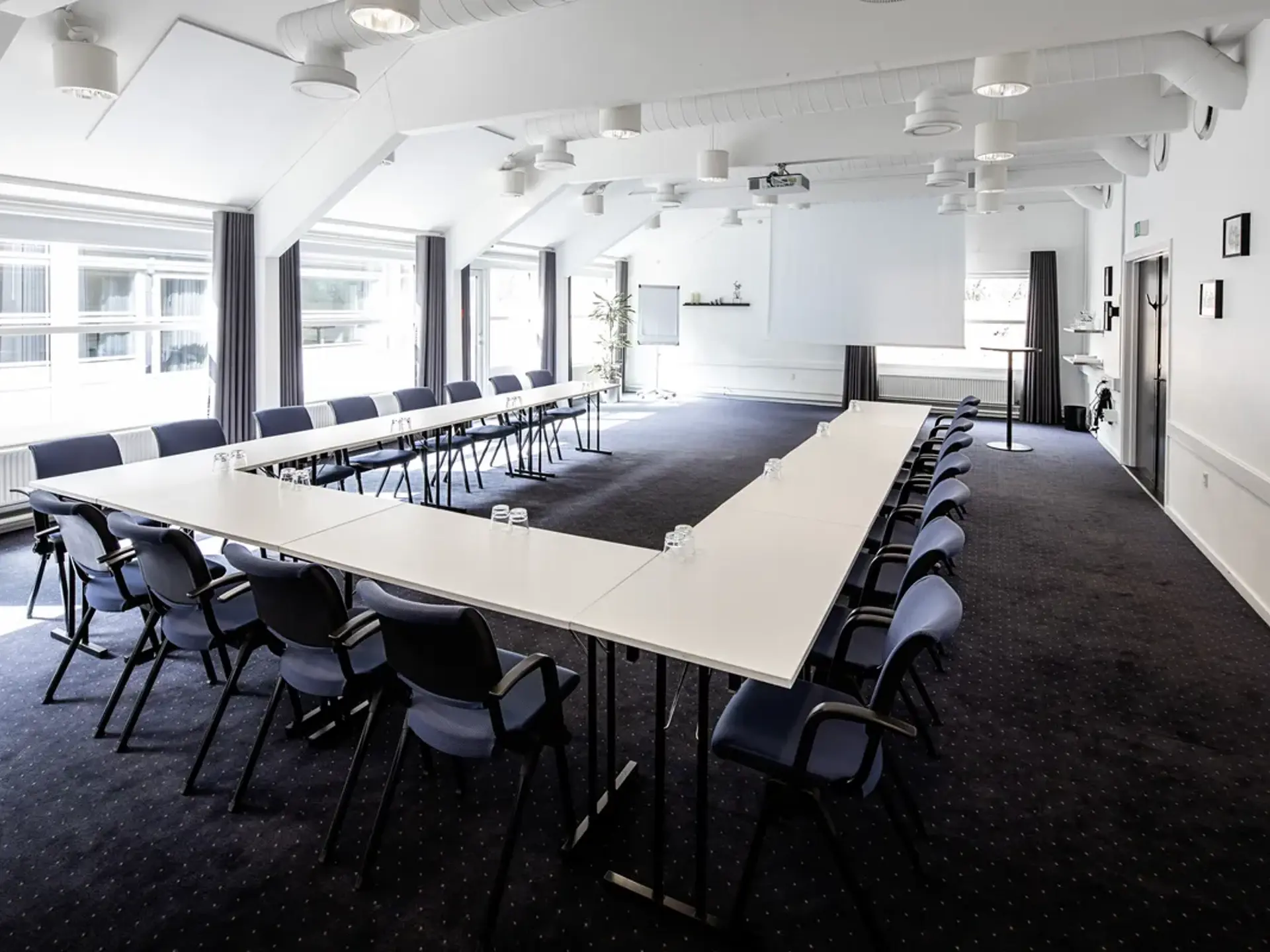 Vores mødefaciliteter er designet til at være fleksible og moderne, hvilket gør dem ideelle til enhver form for firmaevent. Alle lokaler er udstyret med dagslys, hvilket skaber en behagelig og produktiv atmosfære. Vi tilbyder også gratis WiFi i hele hotellet, så du og dine deltagere altid kan være online.