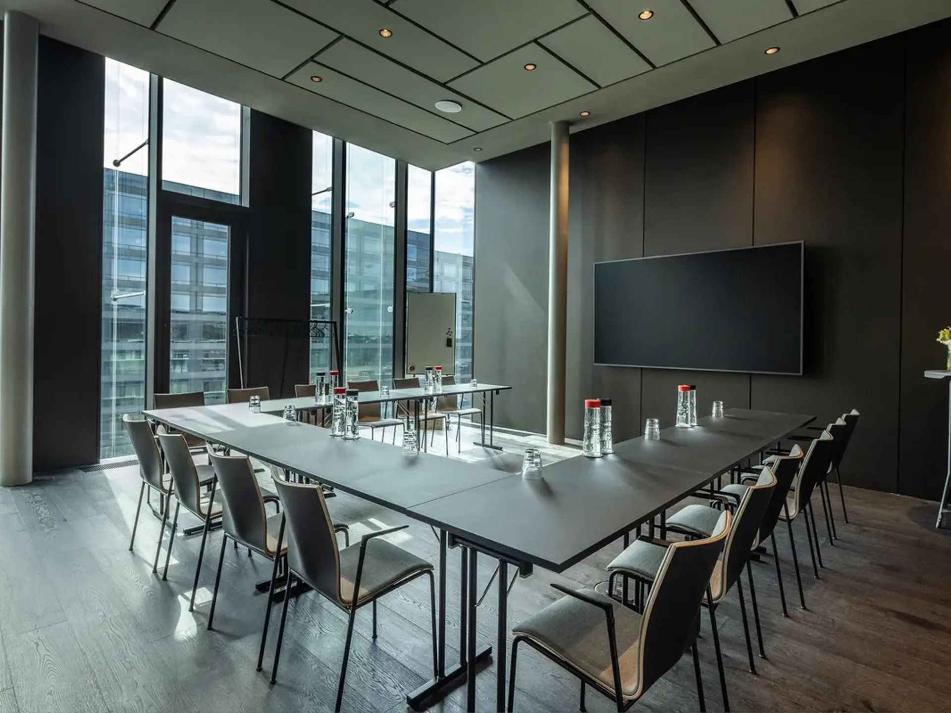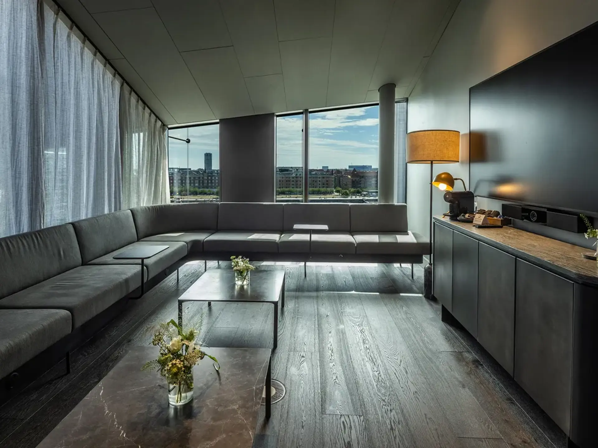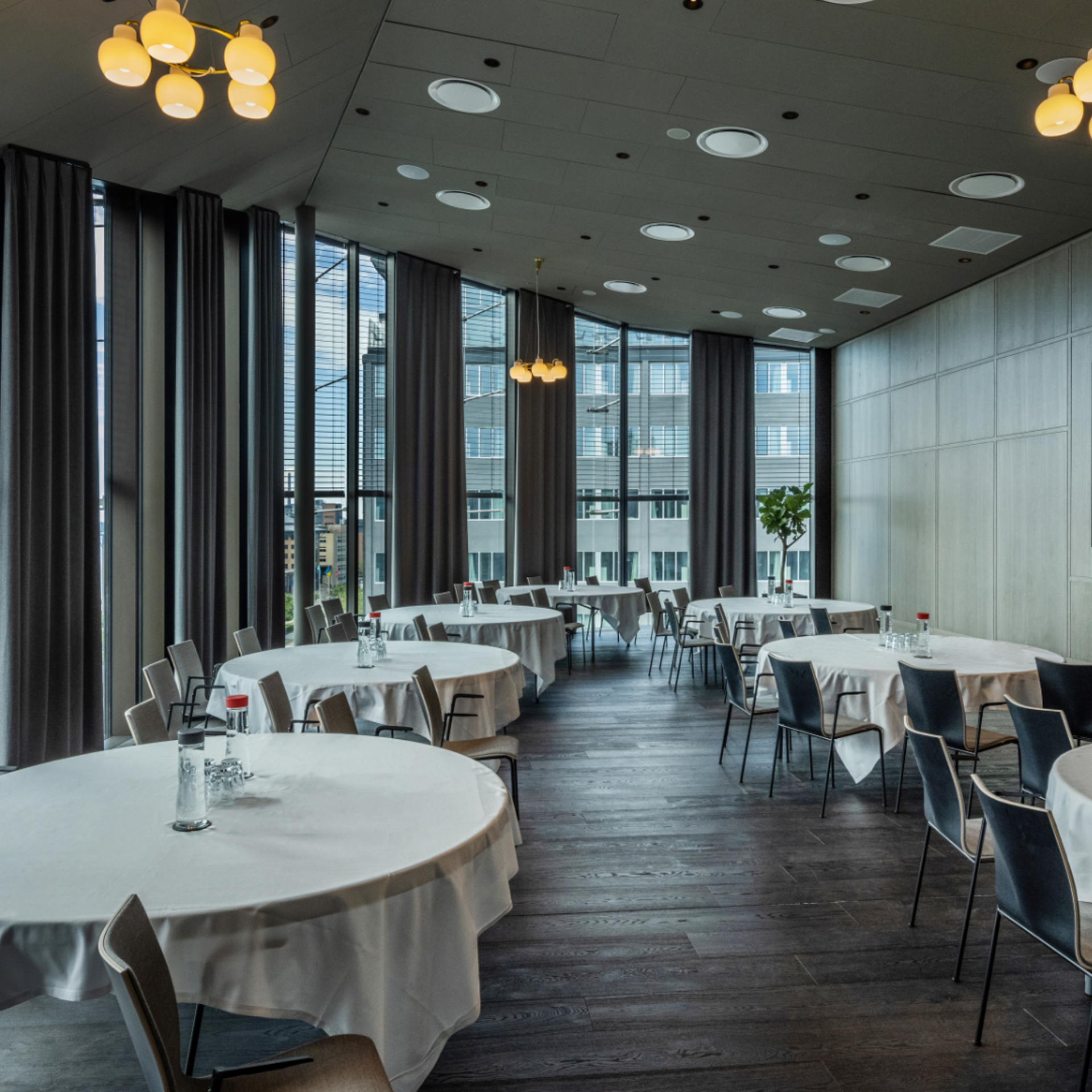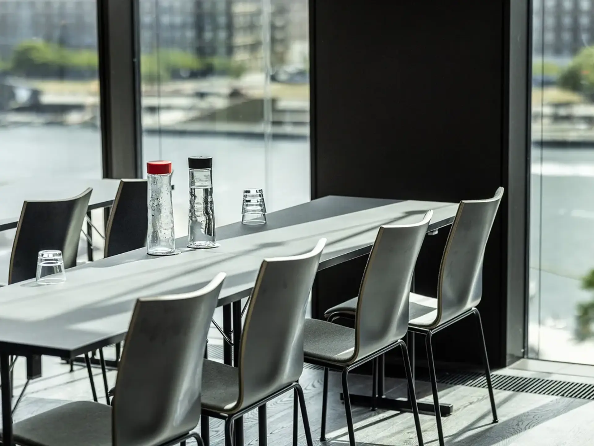 På 6. etage har vi 9 mødelokaler i forskellige størrelser; mange med udsigt over havnen. Der er adgang til udendørs terrasser, hyggelige pausearealer og kreative break-out områder til små møder eller gruppearbejde. Har du lyst til at flytte dagens hjemmearbejde til mere inspirerende omgivelser, kan du booke en arbejdsstation med plads til Teams-møder og store tanker.