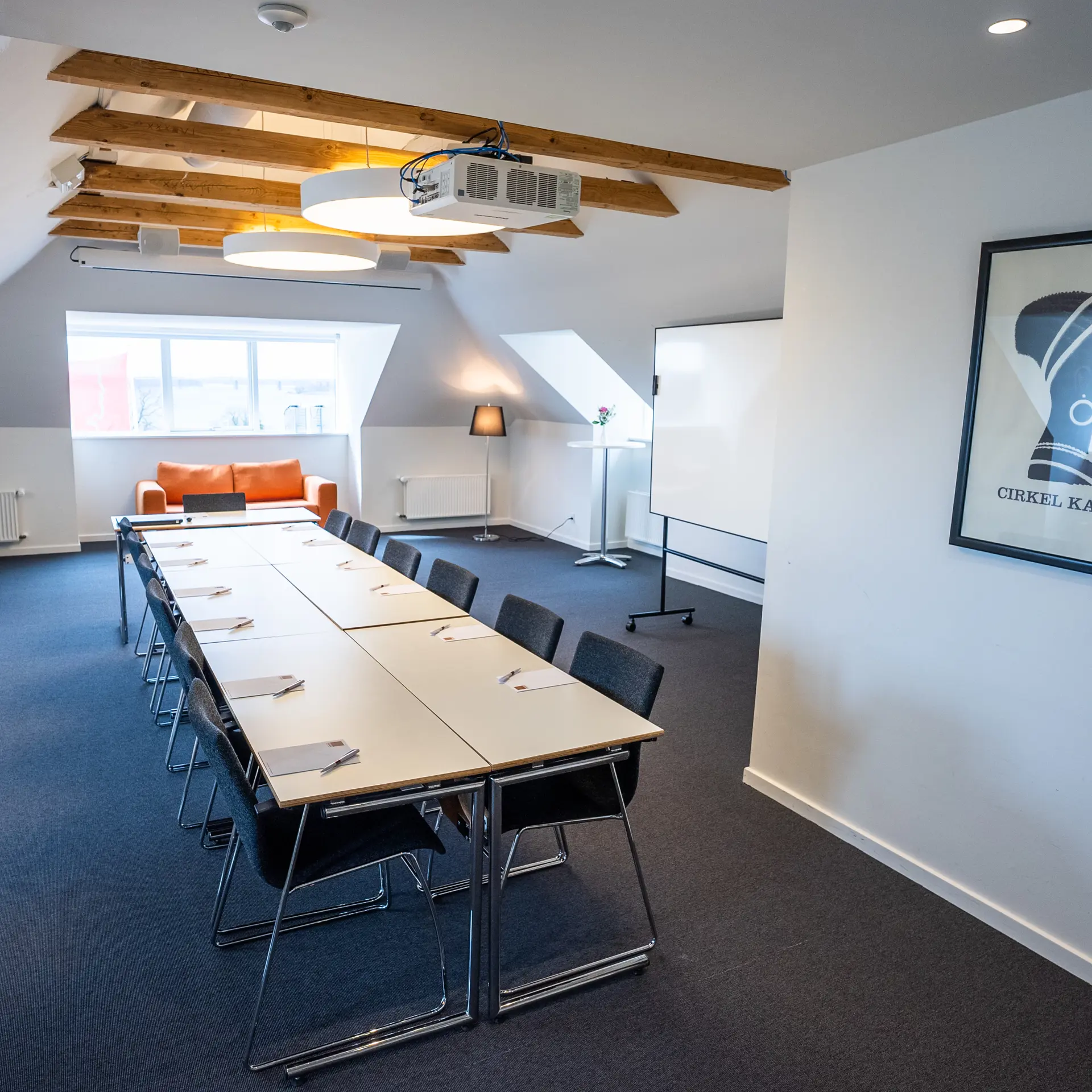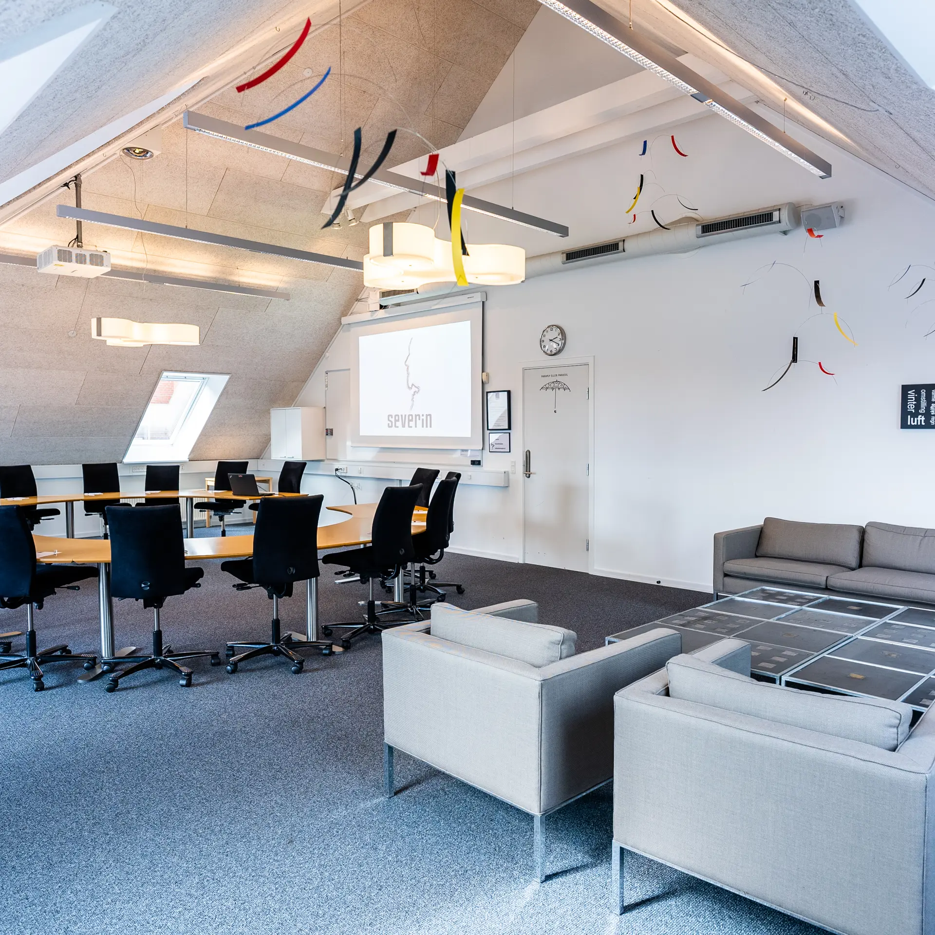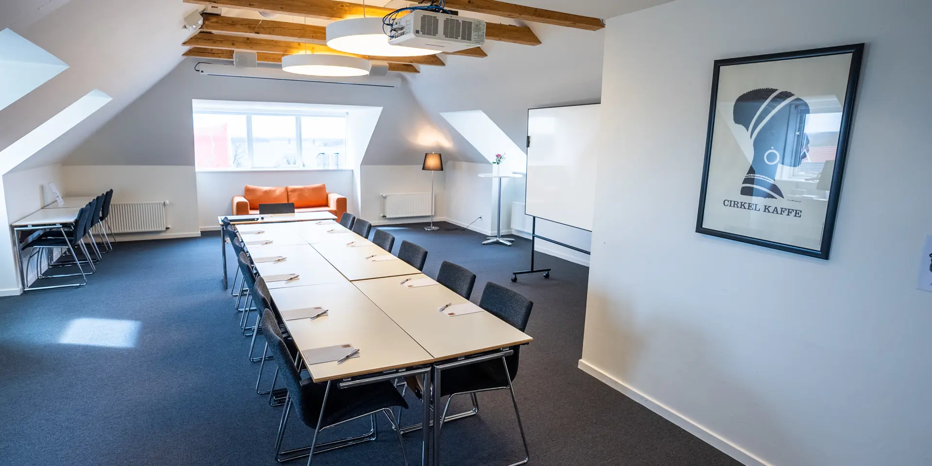 Vi tilbyder 12 grupperum, der er perfekte til breakout-sessions, mindre møder eller gruppearbejde. Disse rum kan rumme mellem 6 og 12 personer og er udstyret med moderne teknologi og komfortable møbler.