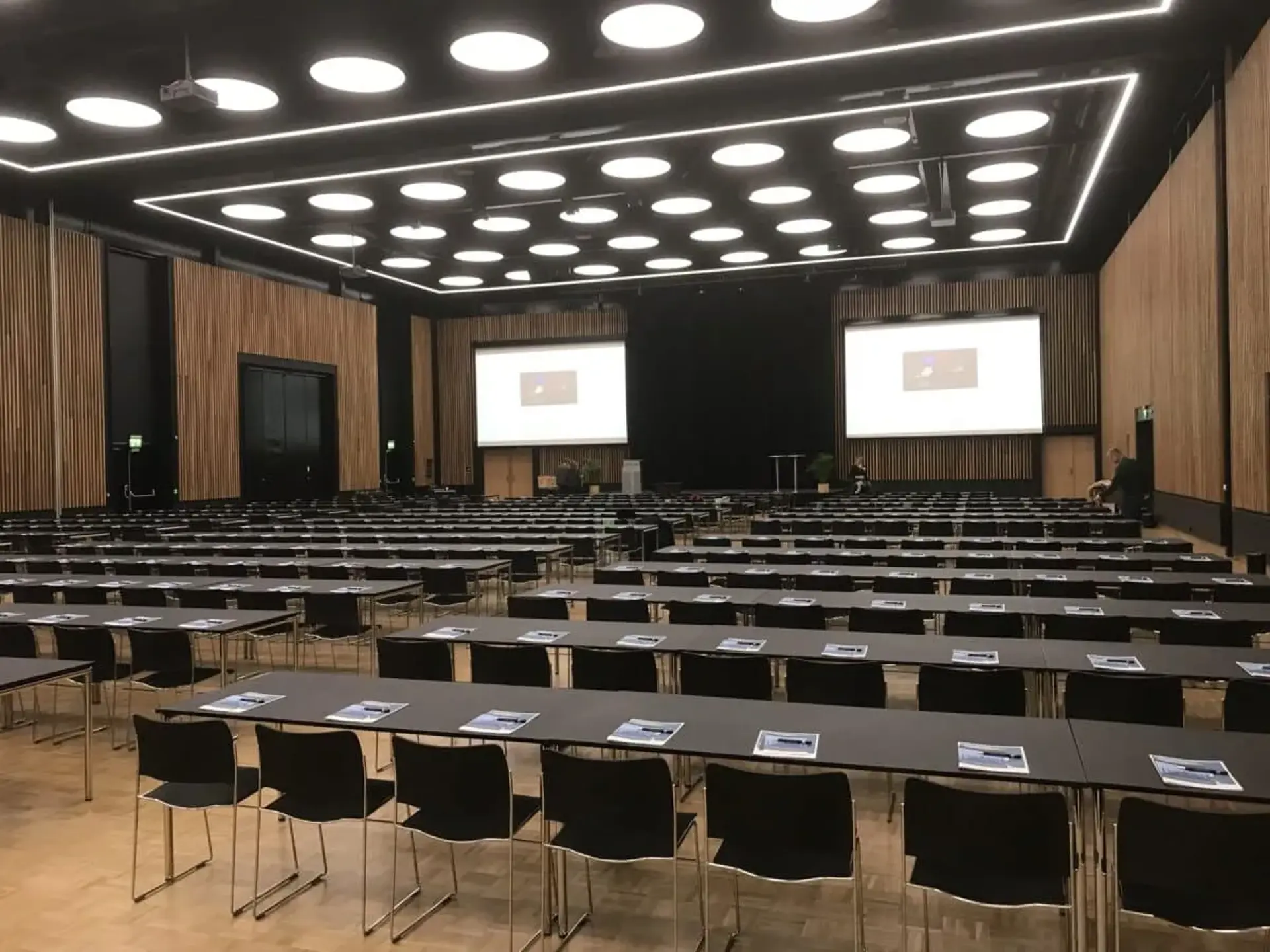 Sundvolden Salen - Vores imponerende nye sal, der rummer op til 800 personer i klasseværelsesopstilling og 1200 personer i biografopstilling. Med topmoderne teknisk udstyr, naturligt dagslys og højt til loftet, er denne sal perfekt til store arrangementer og kan tilpasses i tre størrelser.