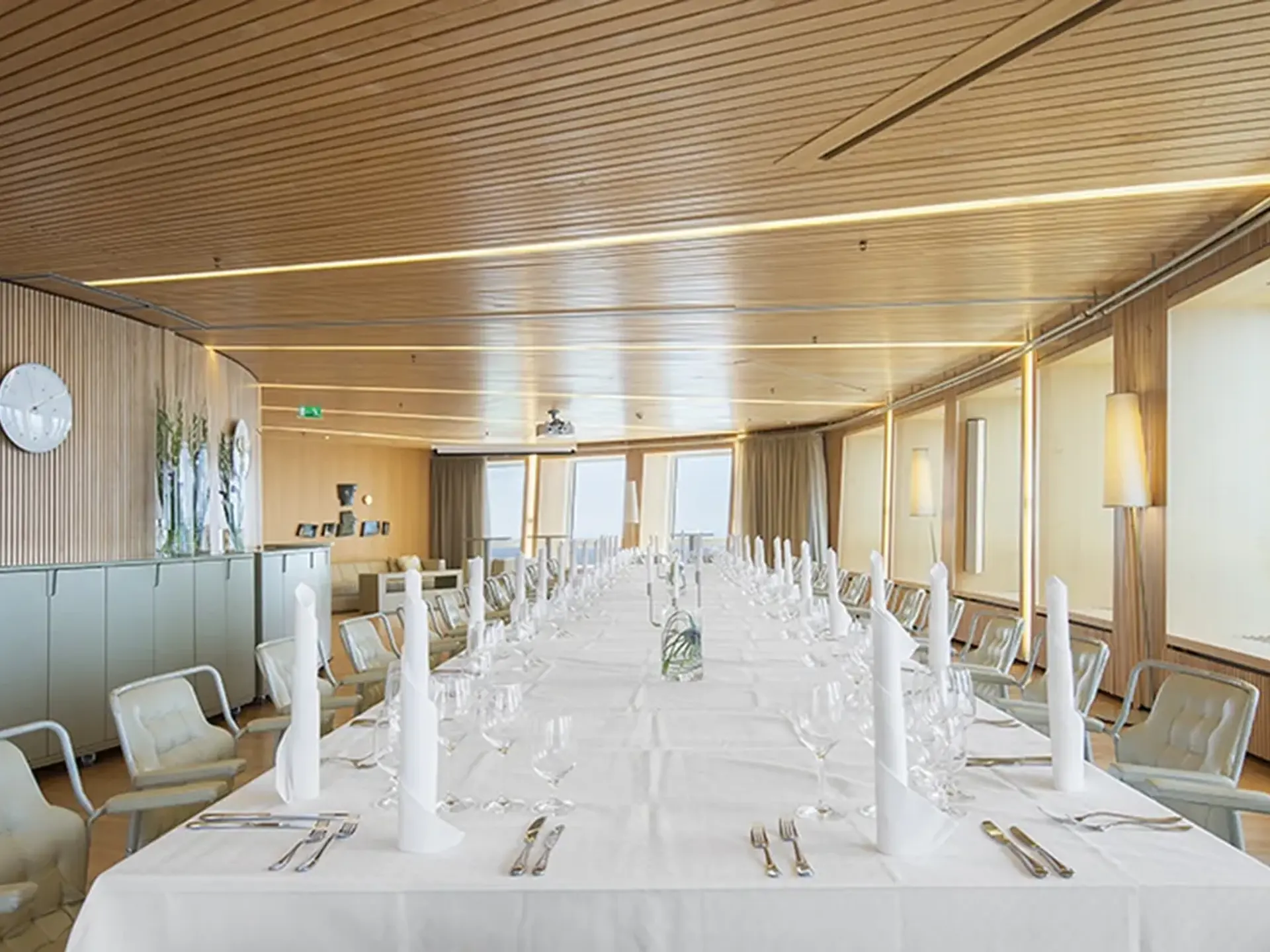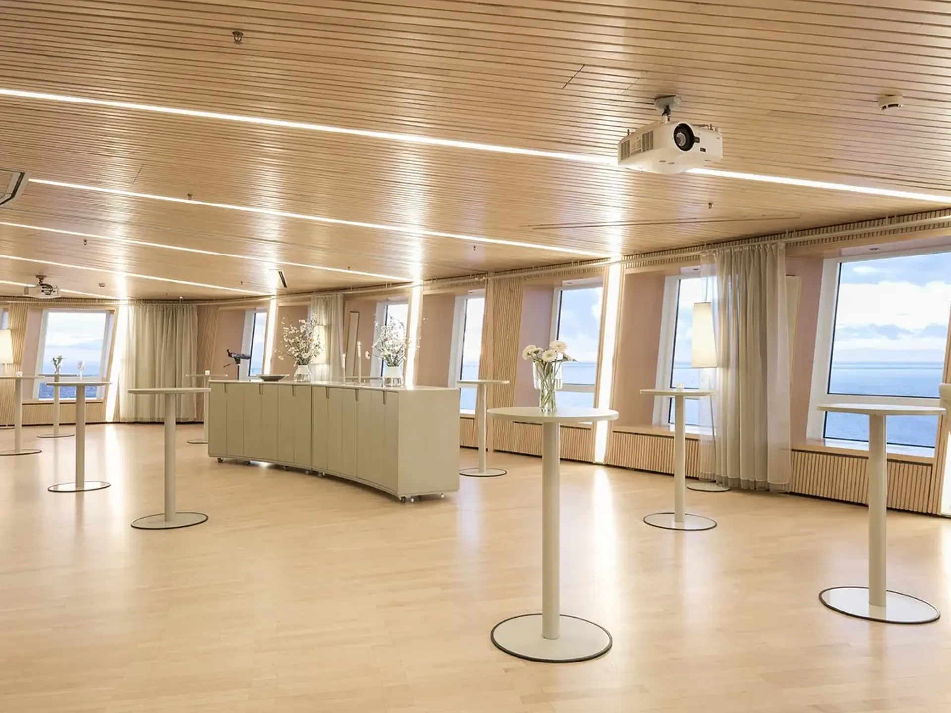 Vores lokaler er designet af den verdensberømte arkitekt Santiago Calatrava og indrettet med naturmaterialer som sten og træpaneler. Dette skaber en varm og elegant atmosfære, perfekt til ethvert forretningsarrangement. Uanset om du planlægger et lille møde eller en stor konference, kan vores fleksible lokaler tilpasses efter dine behov.