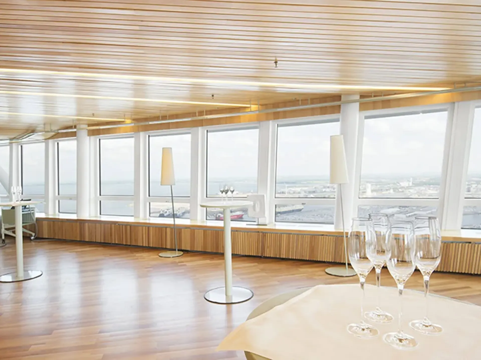 Velkommen til Turning Torso, Skandinaviens højeste og mest ikoniske mødested, strategisk placeret i Malmø. Med sine imponerende 179 meter over havets overflade tilbyder Turning Torso en betagende 360-graders udsigt, som skaber den perfekte ramme for dit næste møde, konference eller firmaevent.