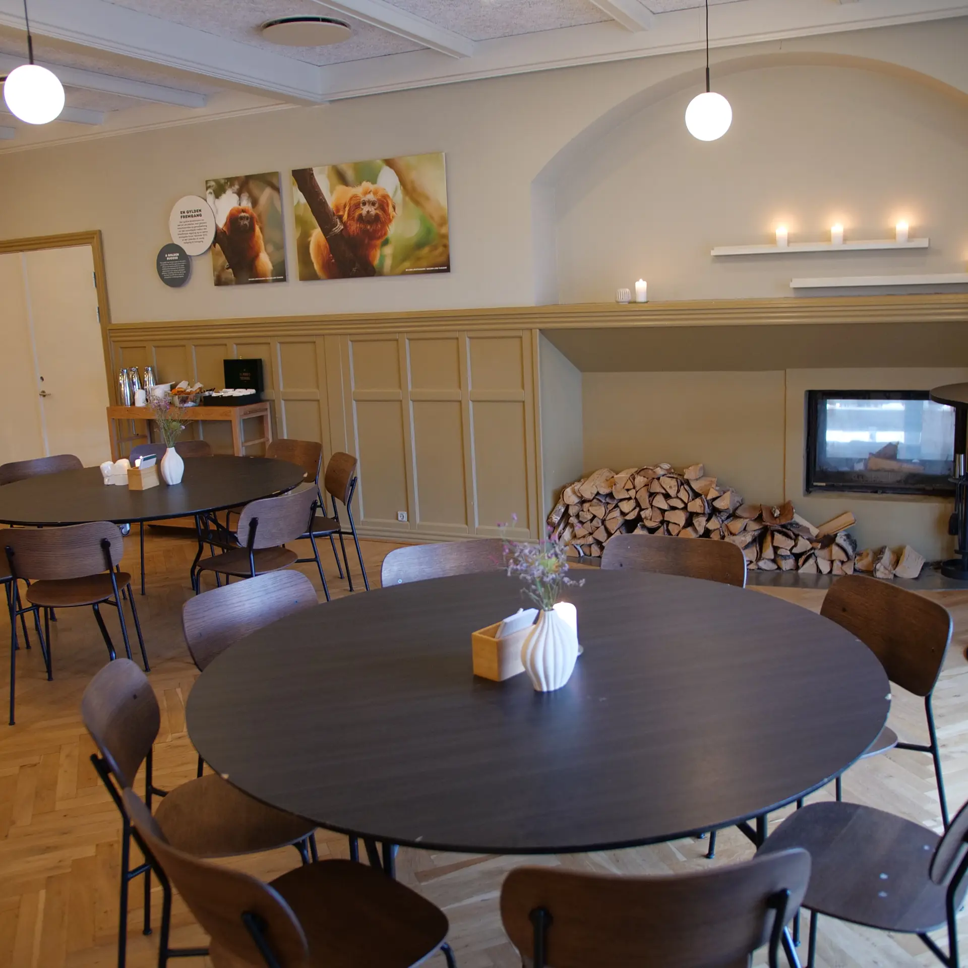 I Kjærbøllingshus finder du fleksibel og indbydende mødelokaler med plads til arrangementer fra 4-140 personer. Mødelokalerne er placeret i stuen og på 1. sal og indeholder opdateret AV-udstyr. På 1. sal er der udsigt over både kameler og løver. I stueetagen har alle mødelokaler direkte udgang til overdækket terrasse.