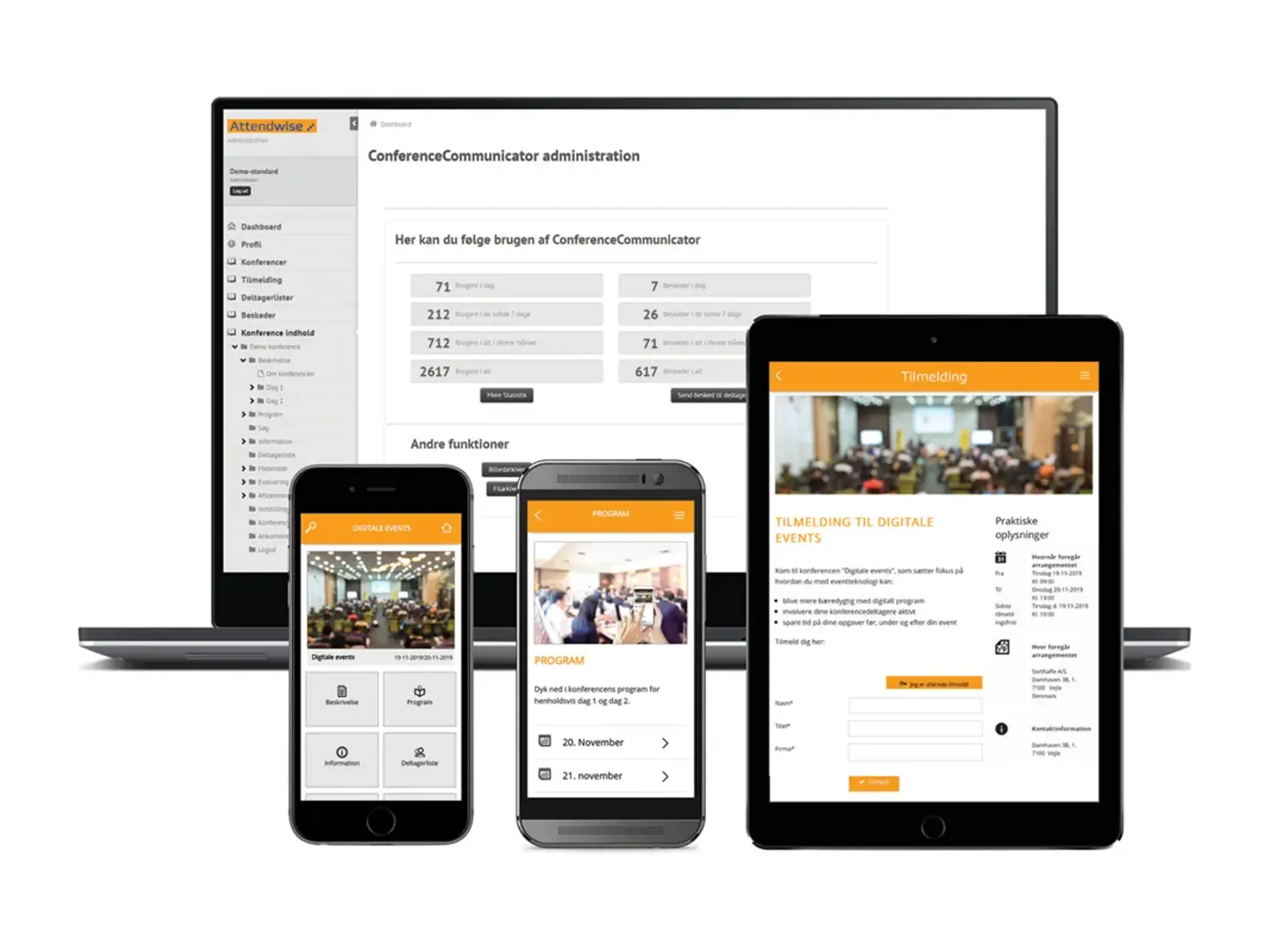 Attendwise er et dansk event-softwarefirma, som gennem mange år har opbygget ConferenceCommunicator i co-creation med vores kunder for at sikre at vores eventsystem opfylder de forskellige behov.
