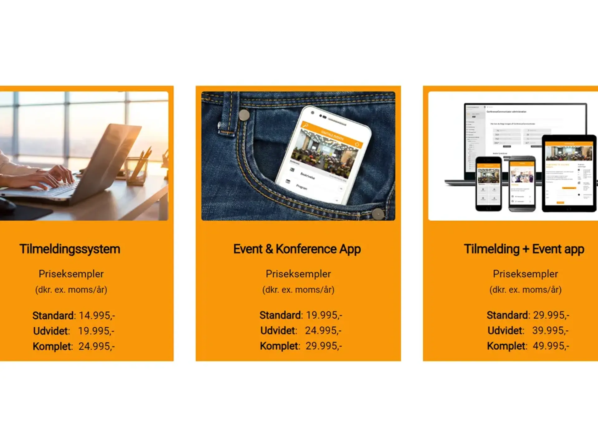Vores kunder, som bl.a. er branche – og medlemsorganisationer, virksomheder, universiteter og andre offentlige instanser, bruger typisk minimum vores tilmeldingssystem og event app.