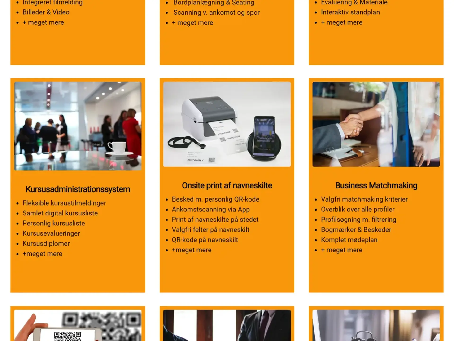 Mens nogle ”nøjes” med event app eller tilmeldingssystem, ja, så er der også mange, der vælger at bruge funktioner som Lead Scanner, Onsite print af navneskilte, Mødebooking eller Matchmaking…