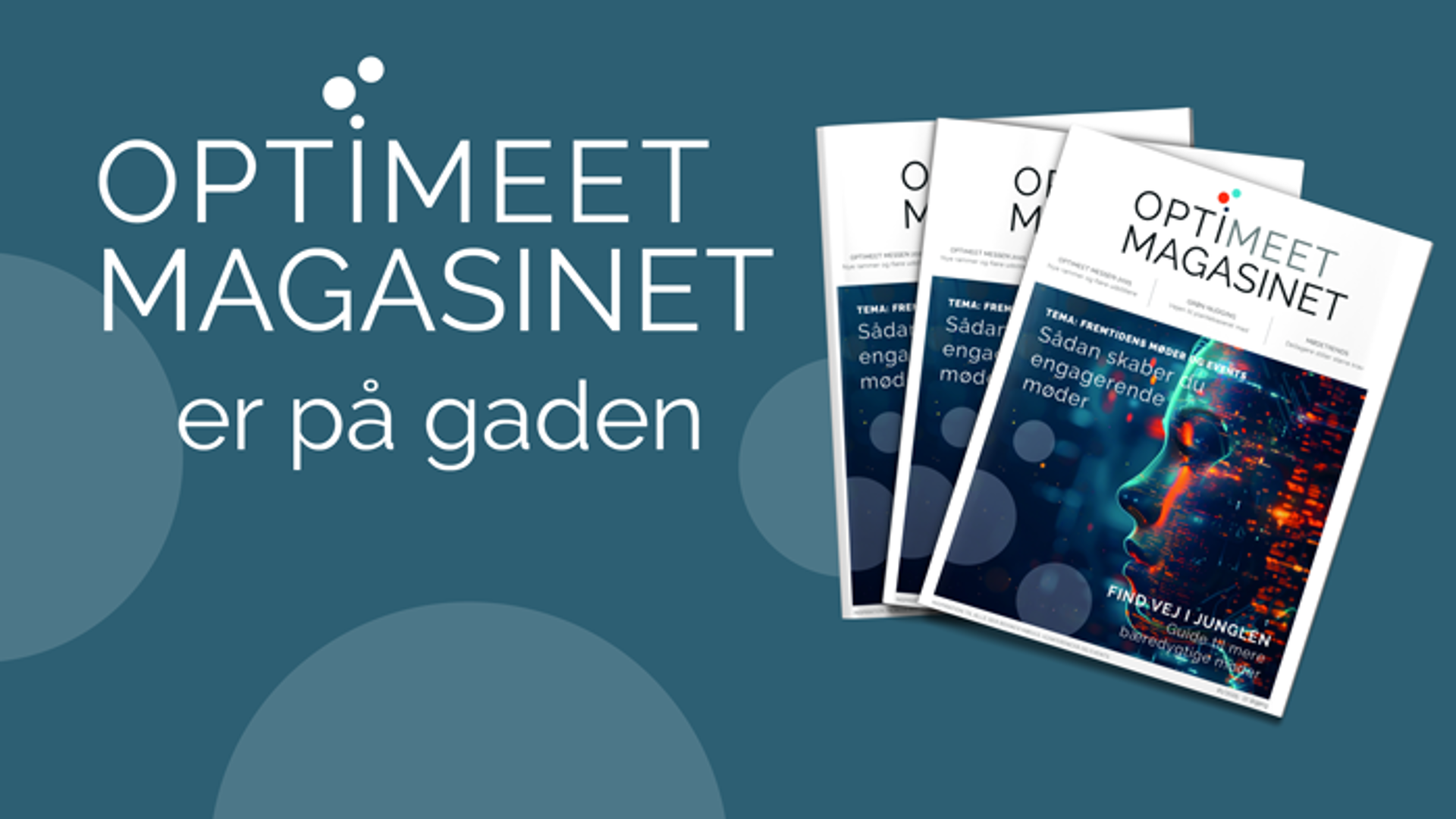 Glæd dig til at gå på opdagelse i OPTIMEET Magasinets i alt 84 sider med spændende indhold, som giver værdi til din rolle, når du booker eller planlægger møder, konferencer og events.
