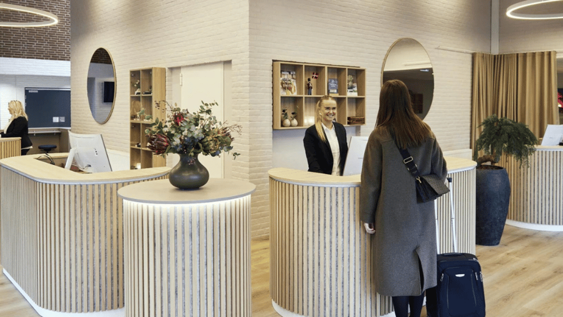 Det første, der møder besøgende, er det totalrenoverede lobbyområde, der nu fremstår i en lys og moderne nordisk stil. Dette område skaber en varm og indbydende atmosfære, der gør både ind- og udtjekning til en behagelig oplevelse, mens det hyggelige barområde indbyder til afslapning.